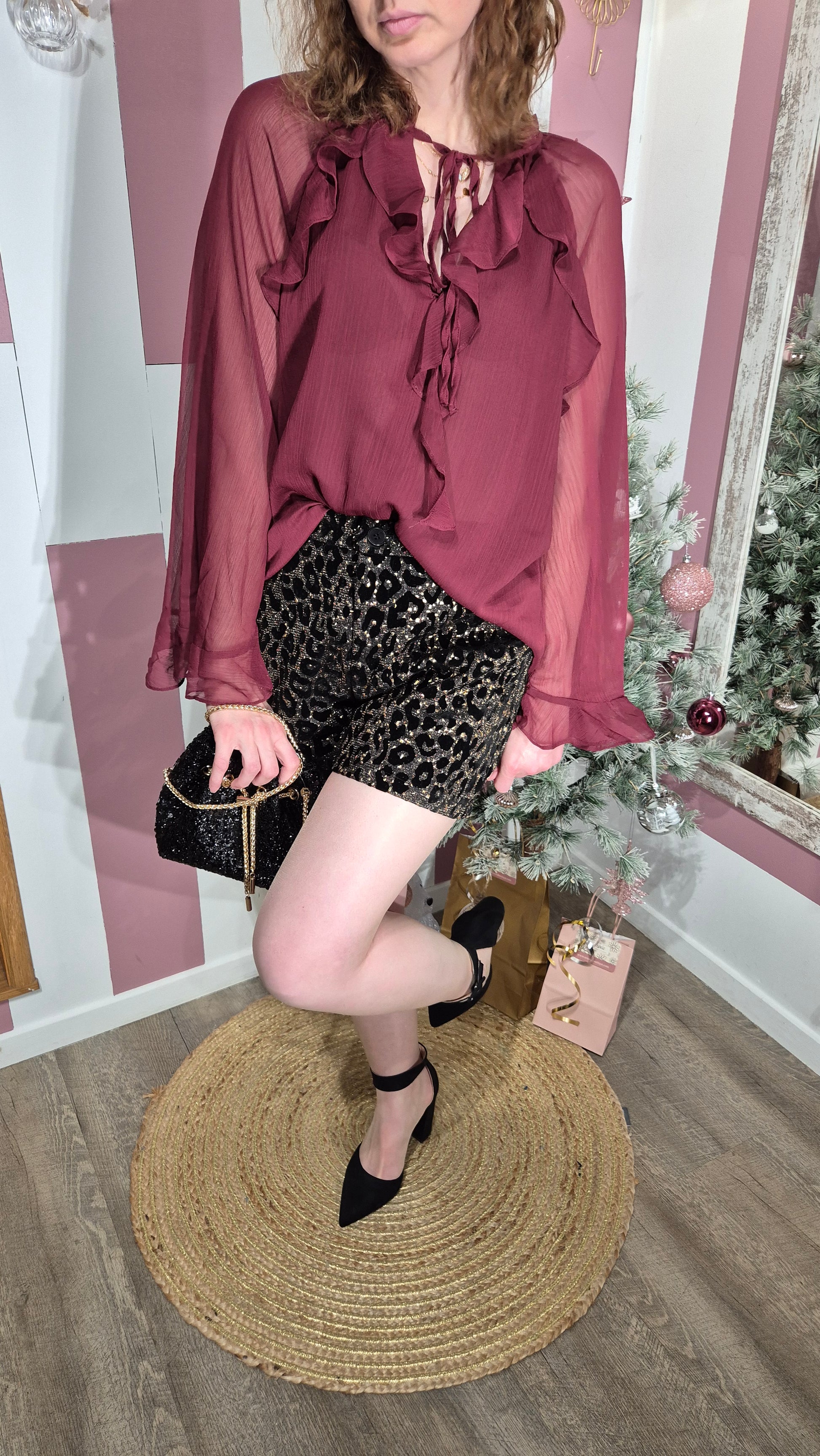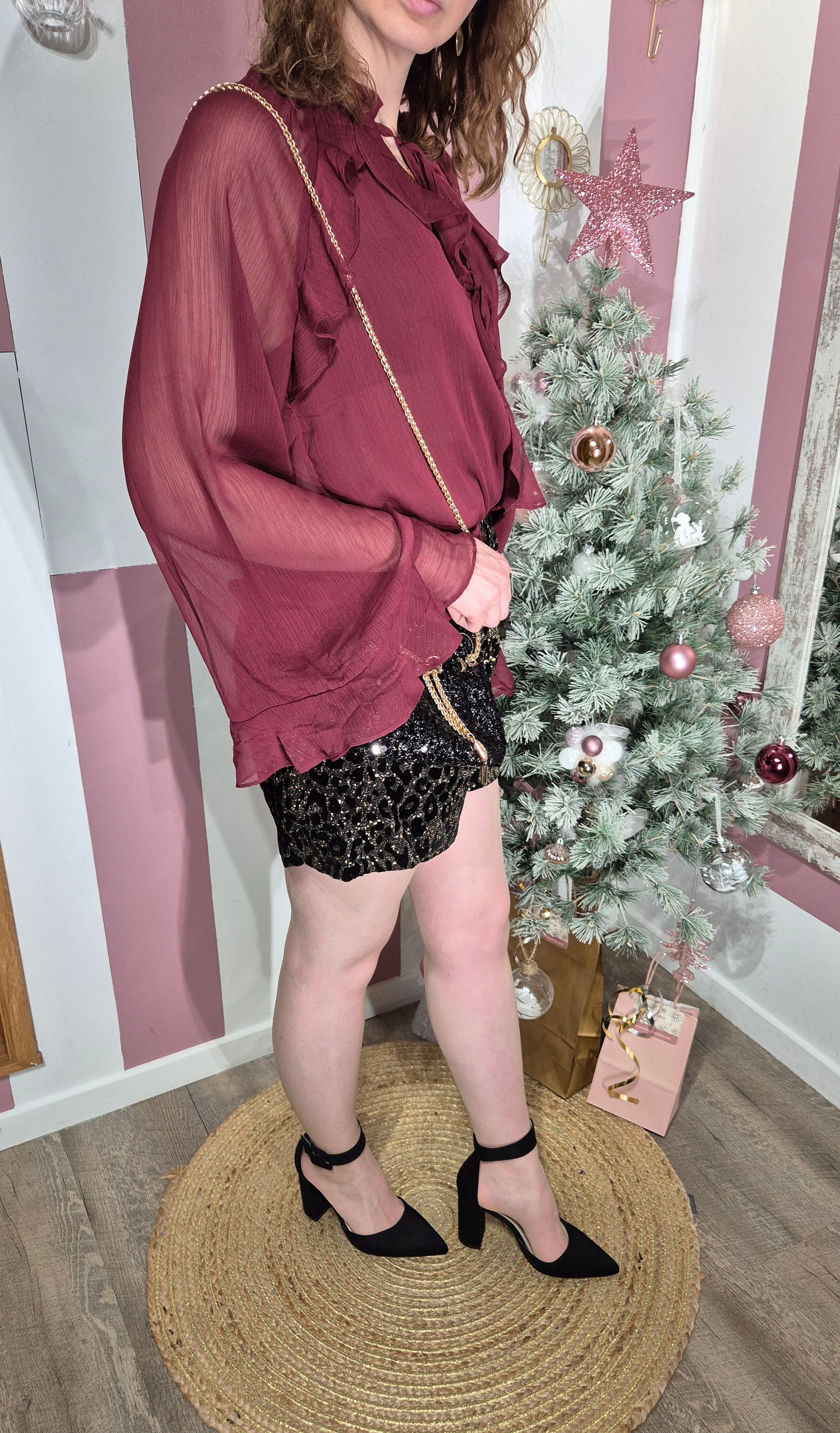 . Blouse mousseline à volants