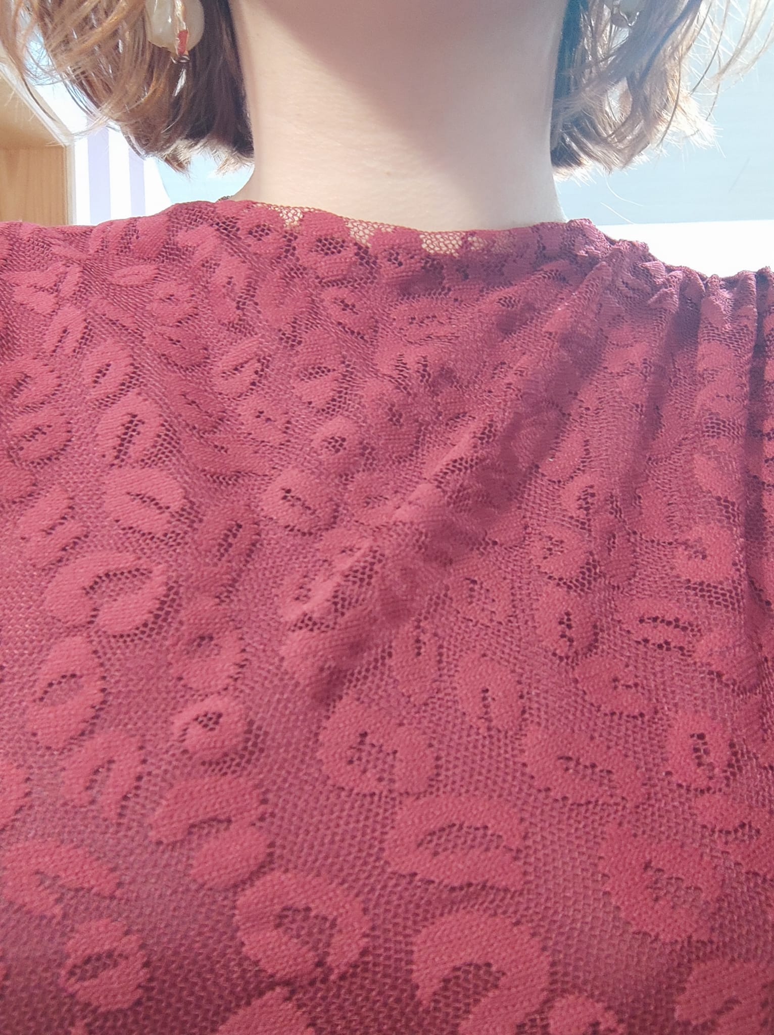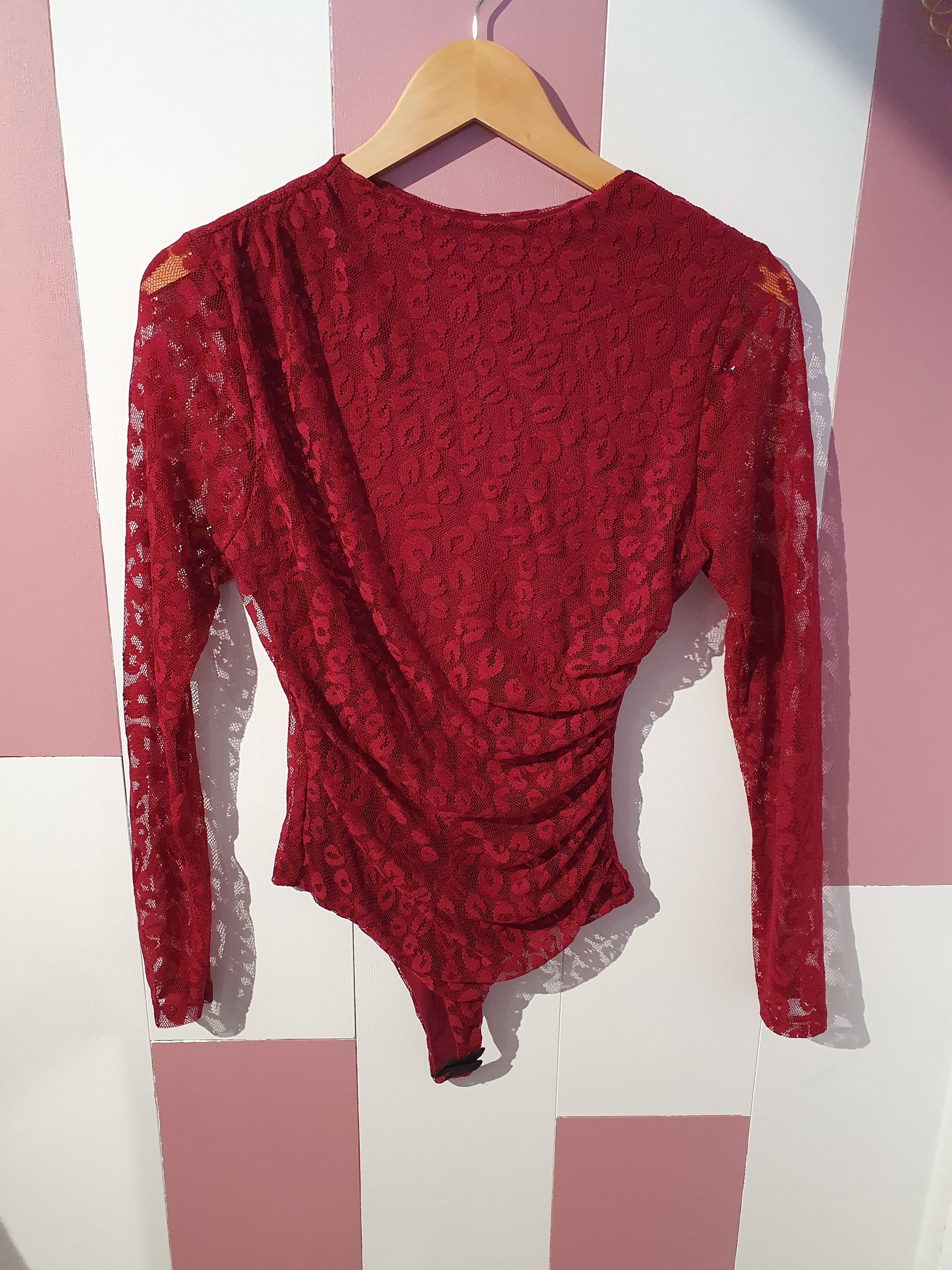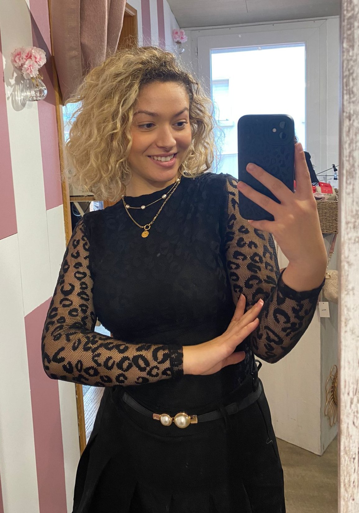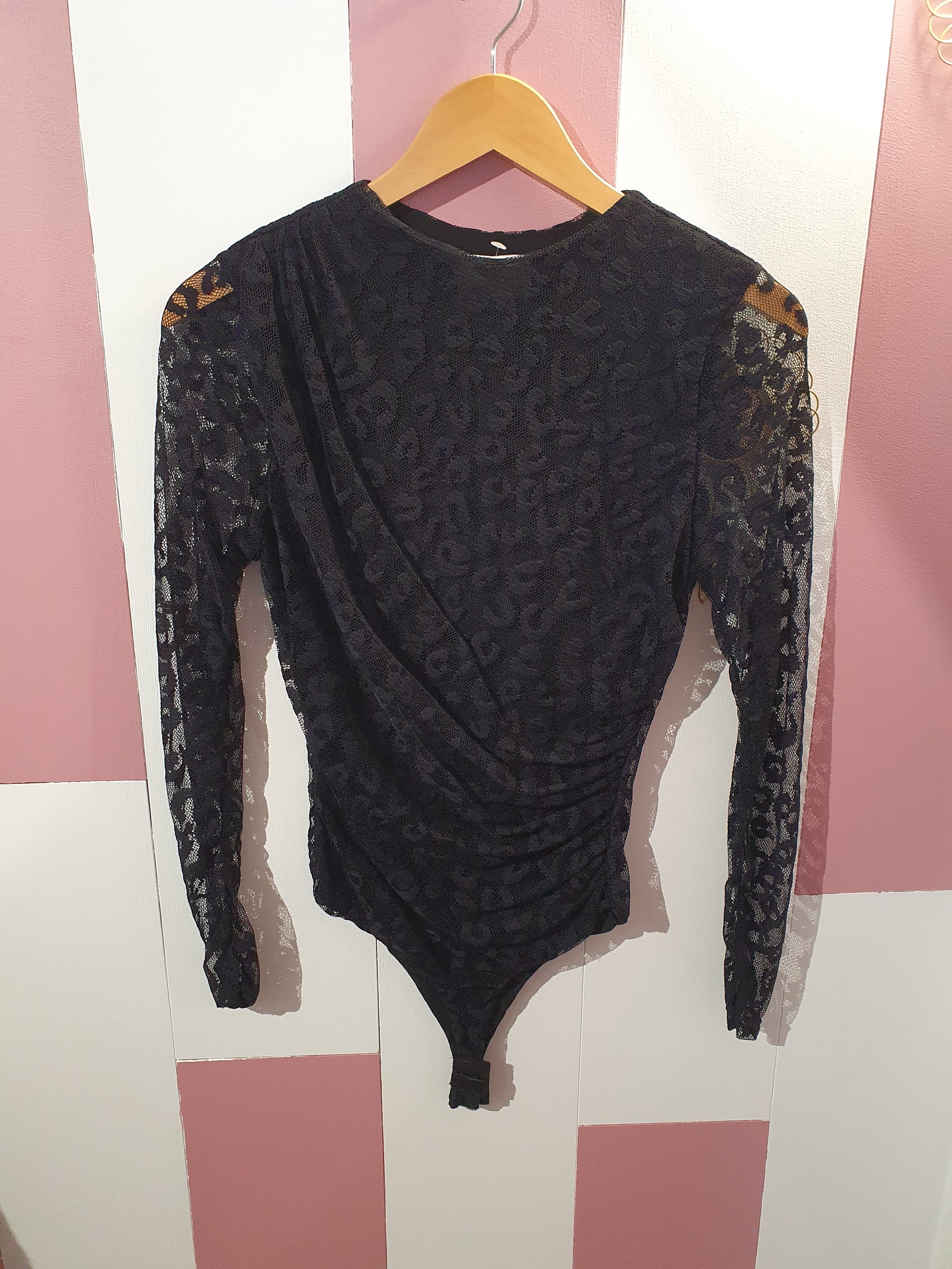 . Body fin uni à dentelle motif léopard, col ras du cou