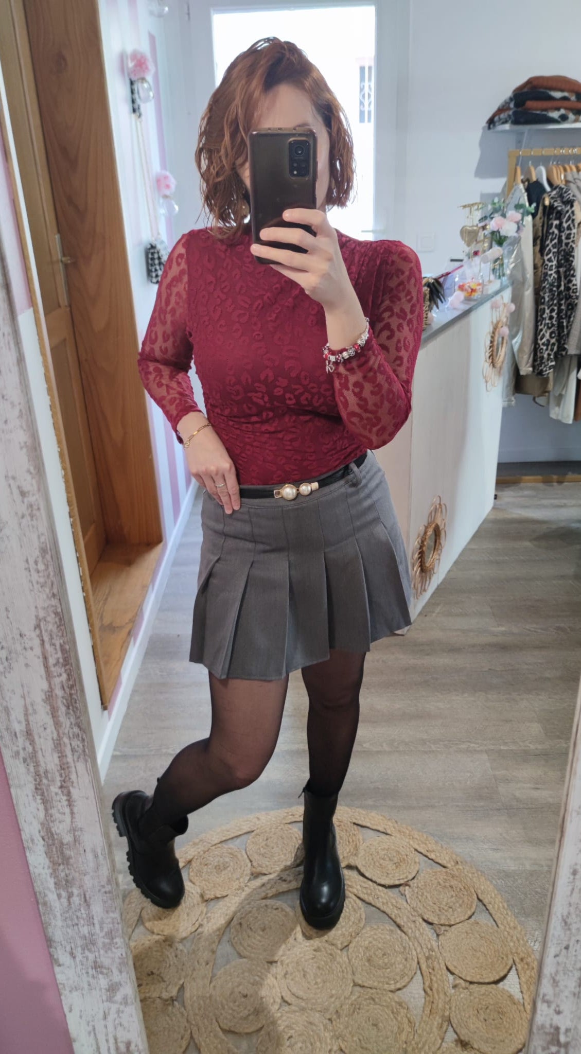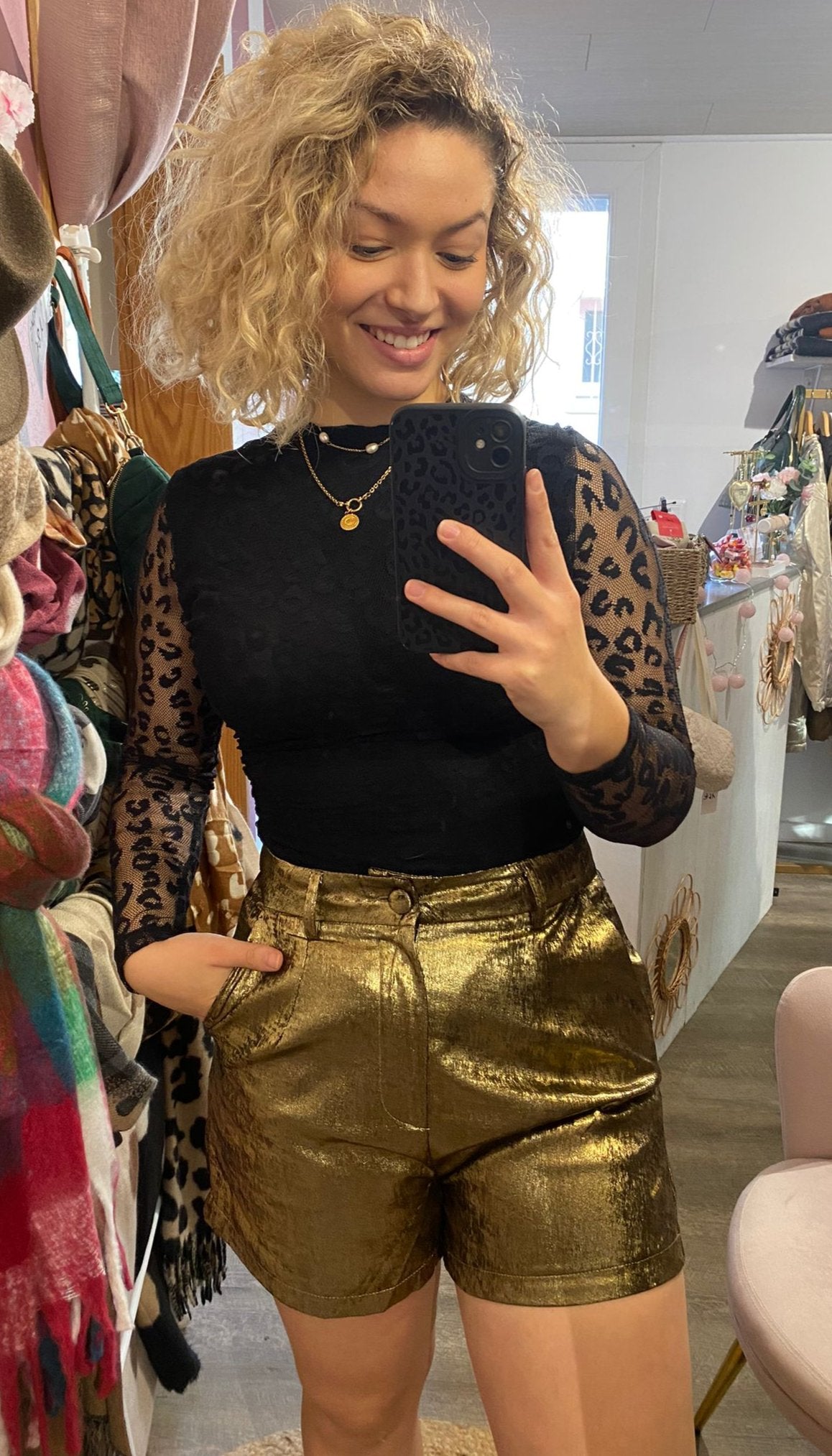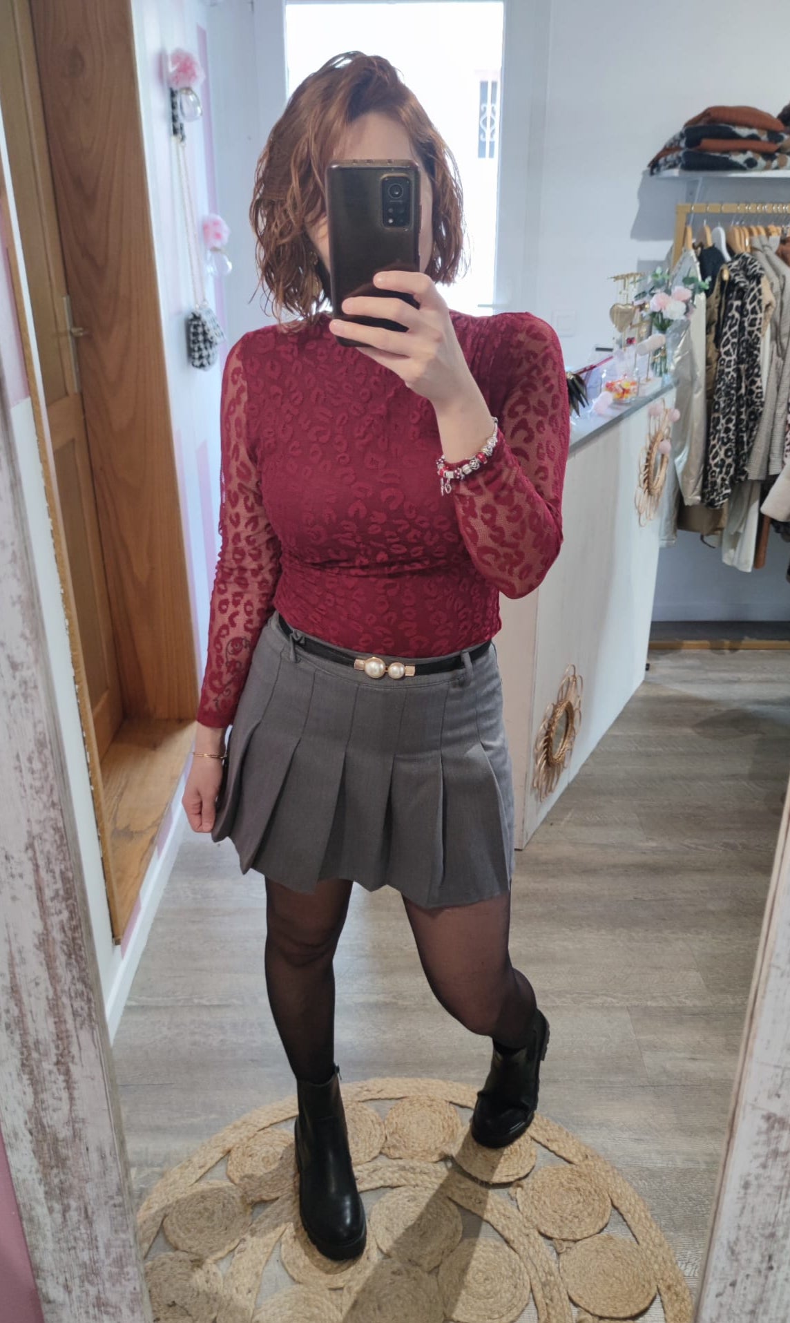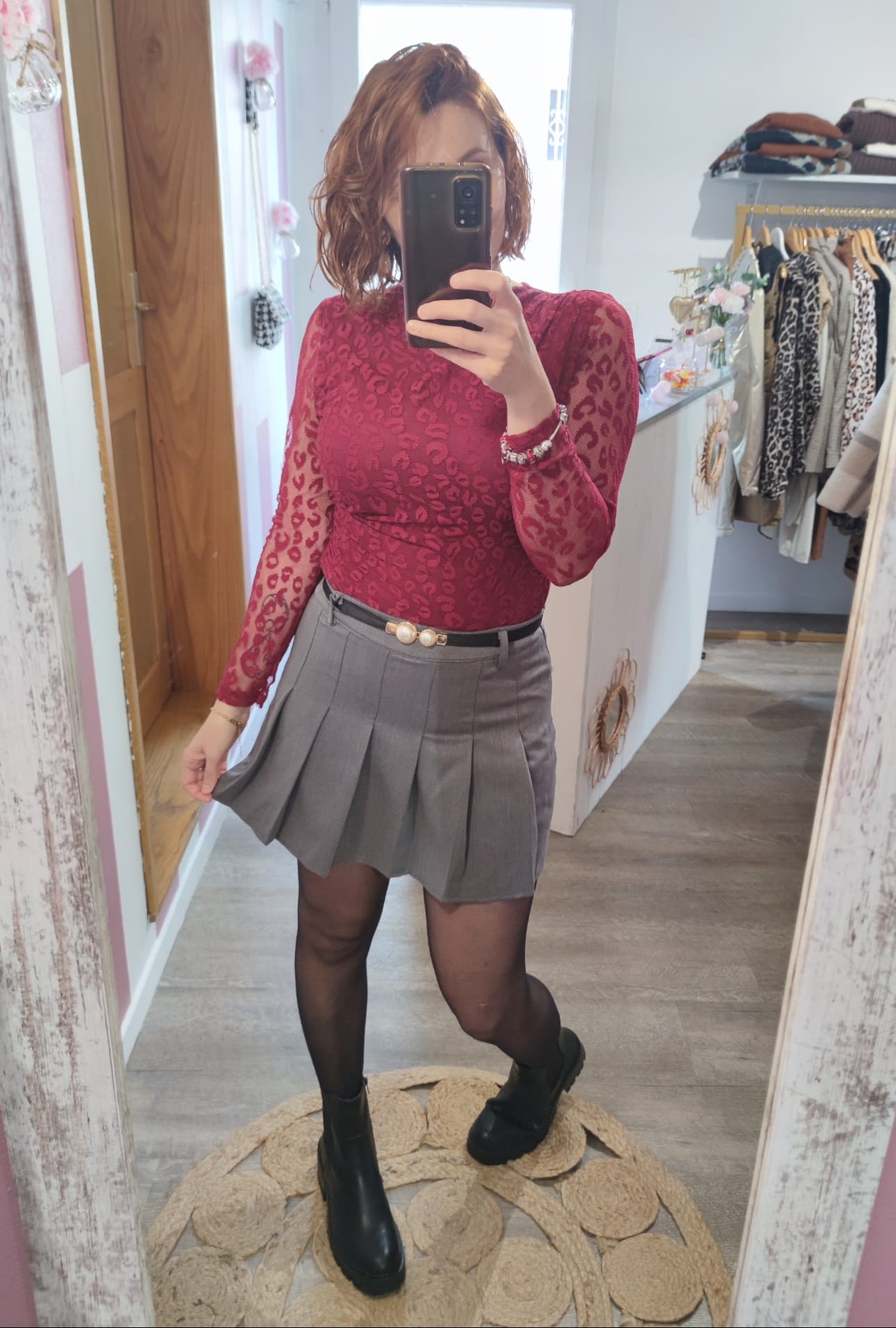 . Body fin uni à dentelle motif léopard, col ras du cou