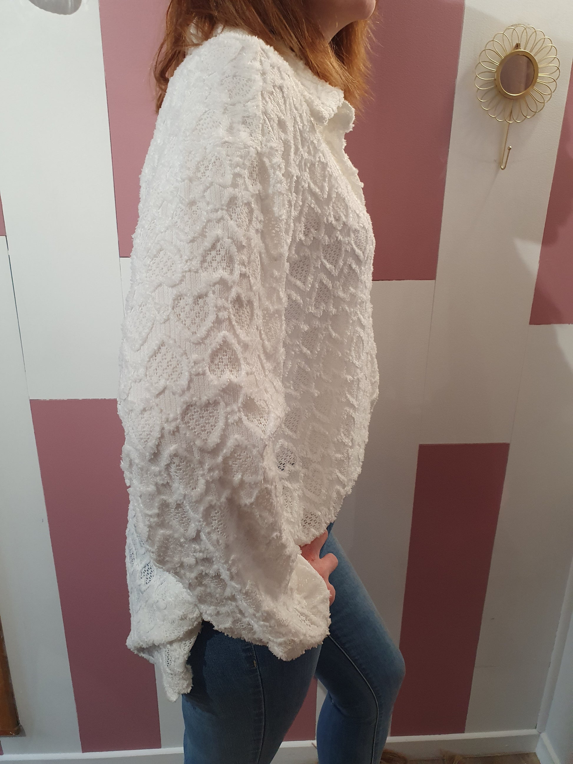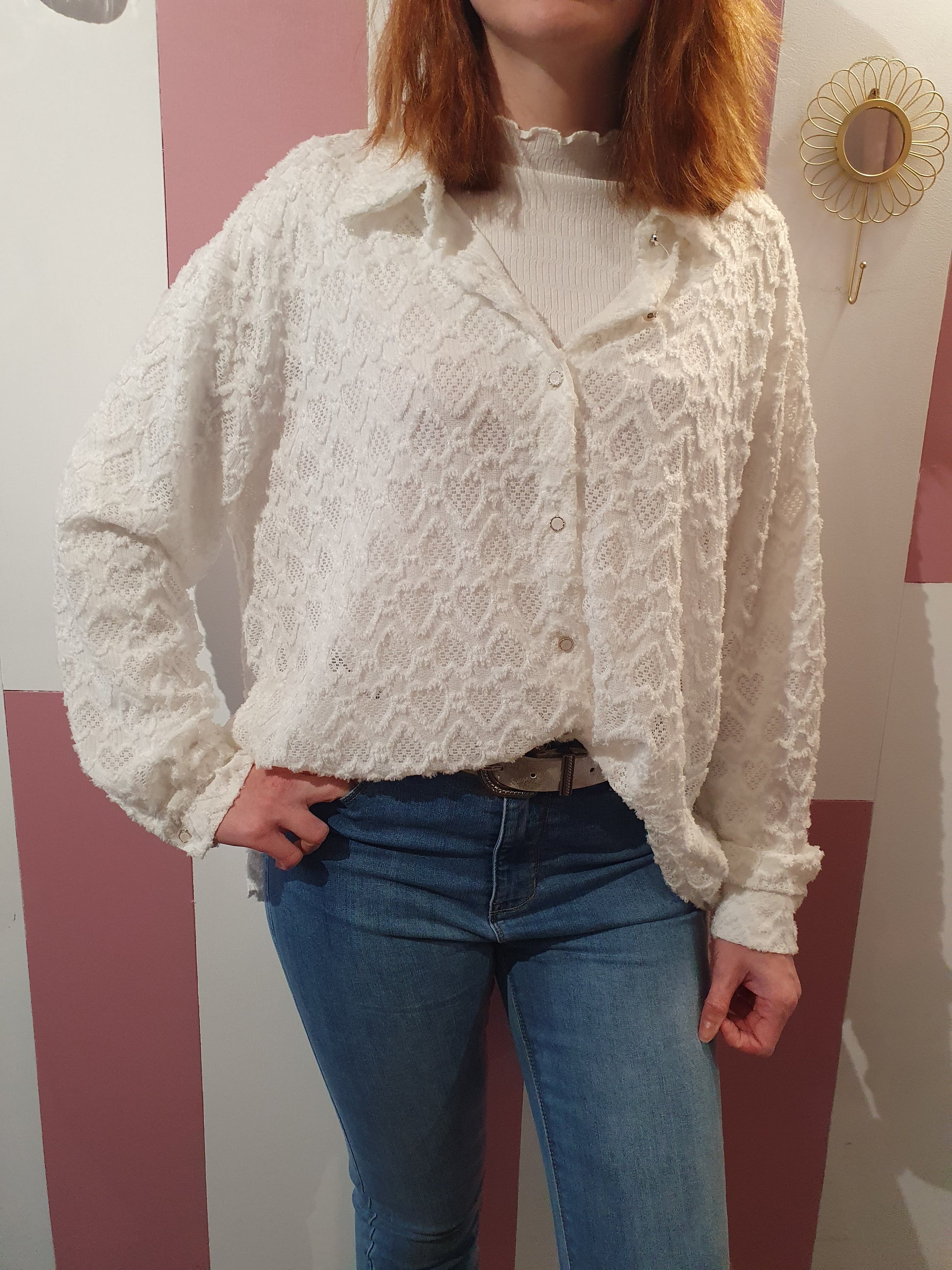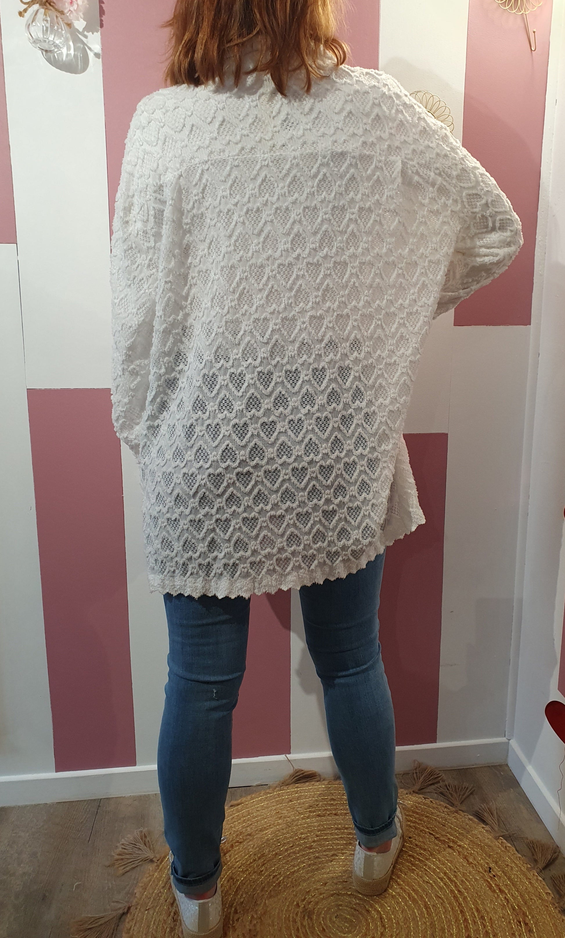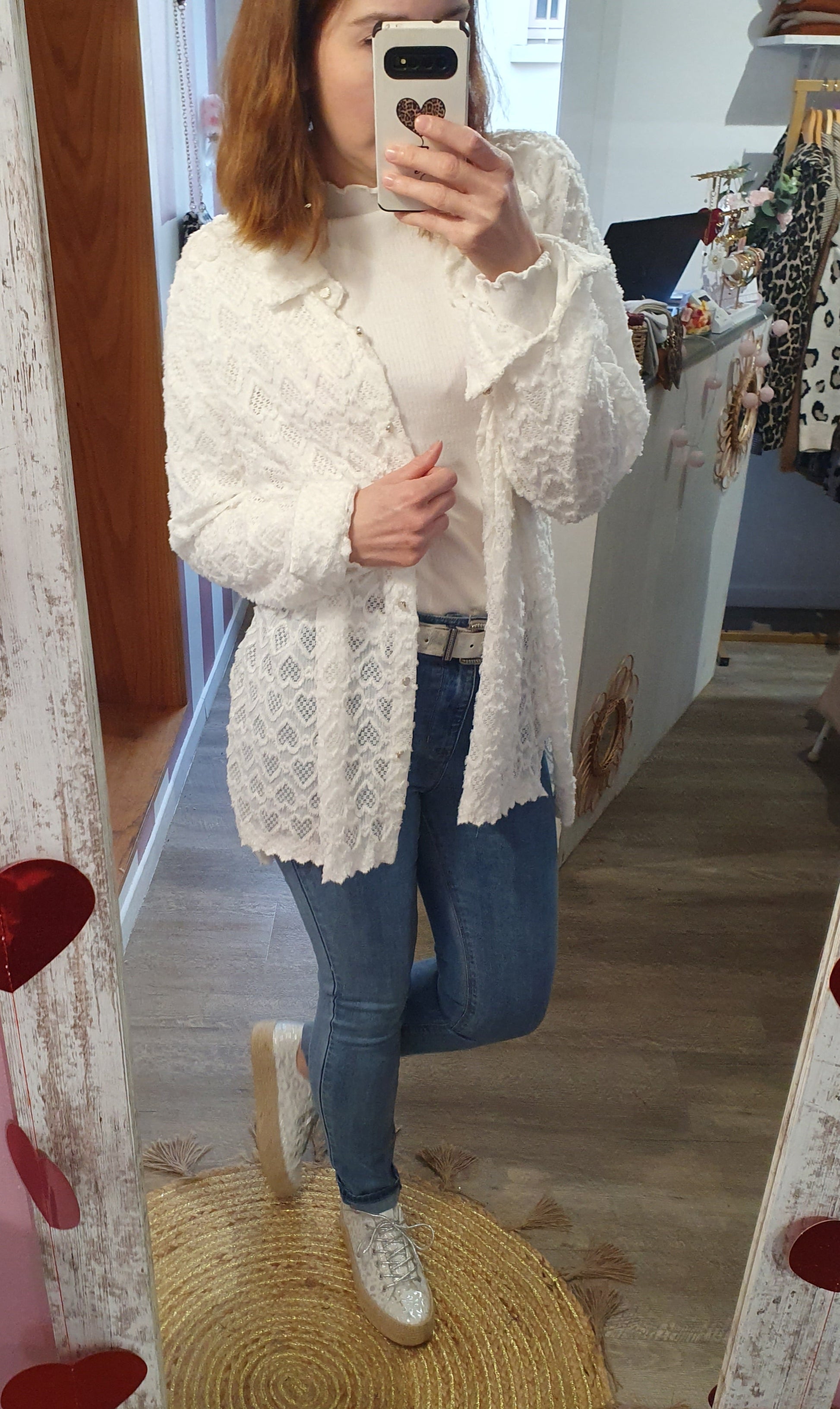 . Chemise longue, blanche à dentelle, à motif cœur en relief