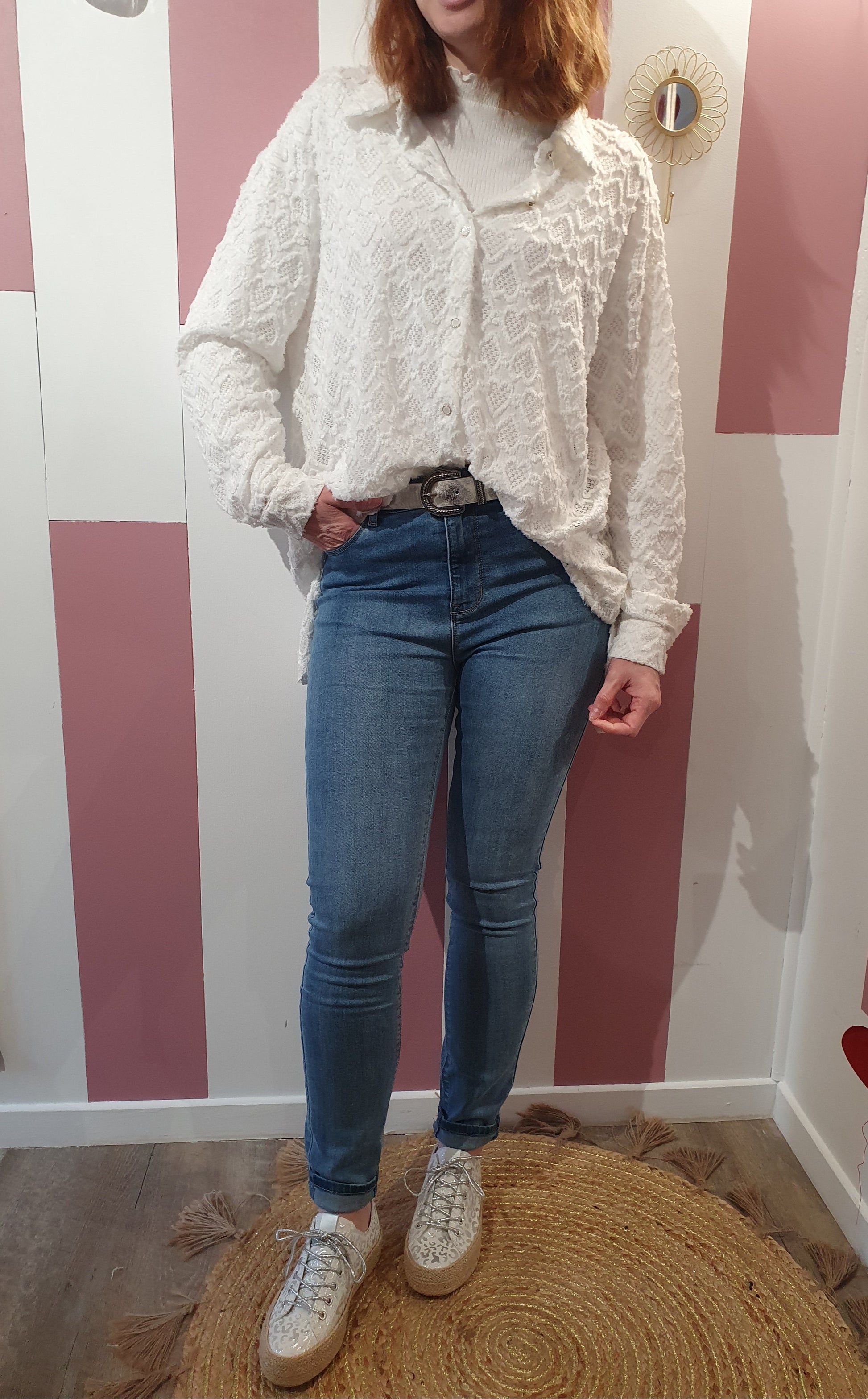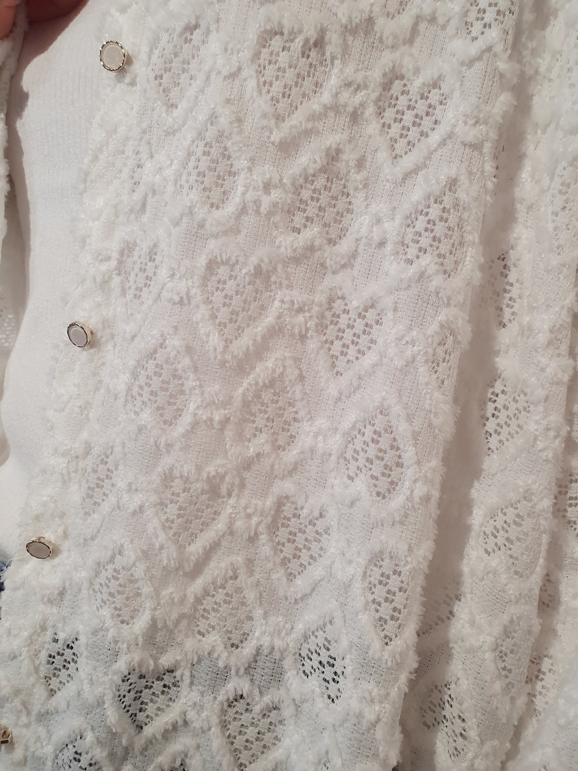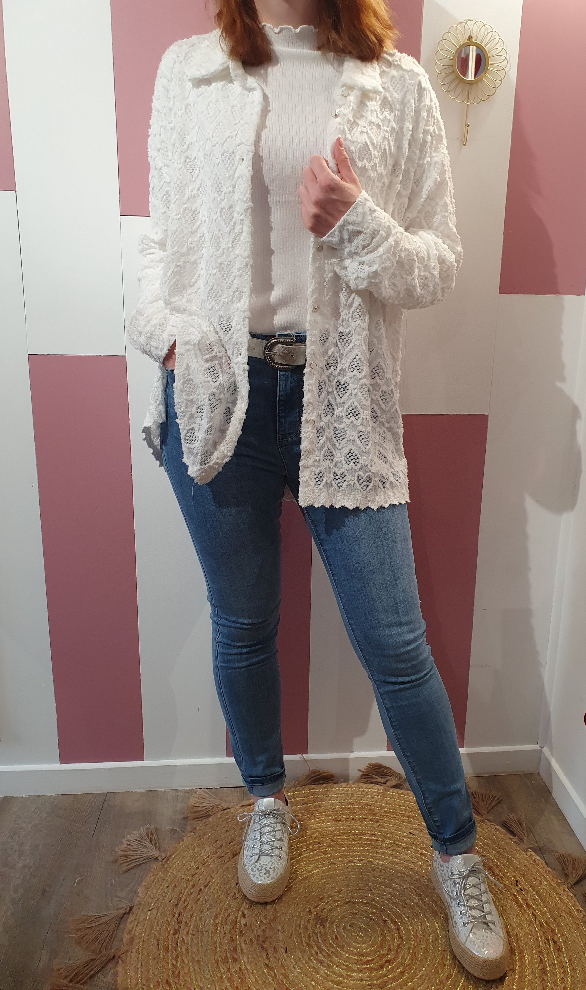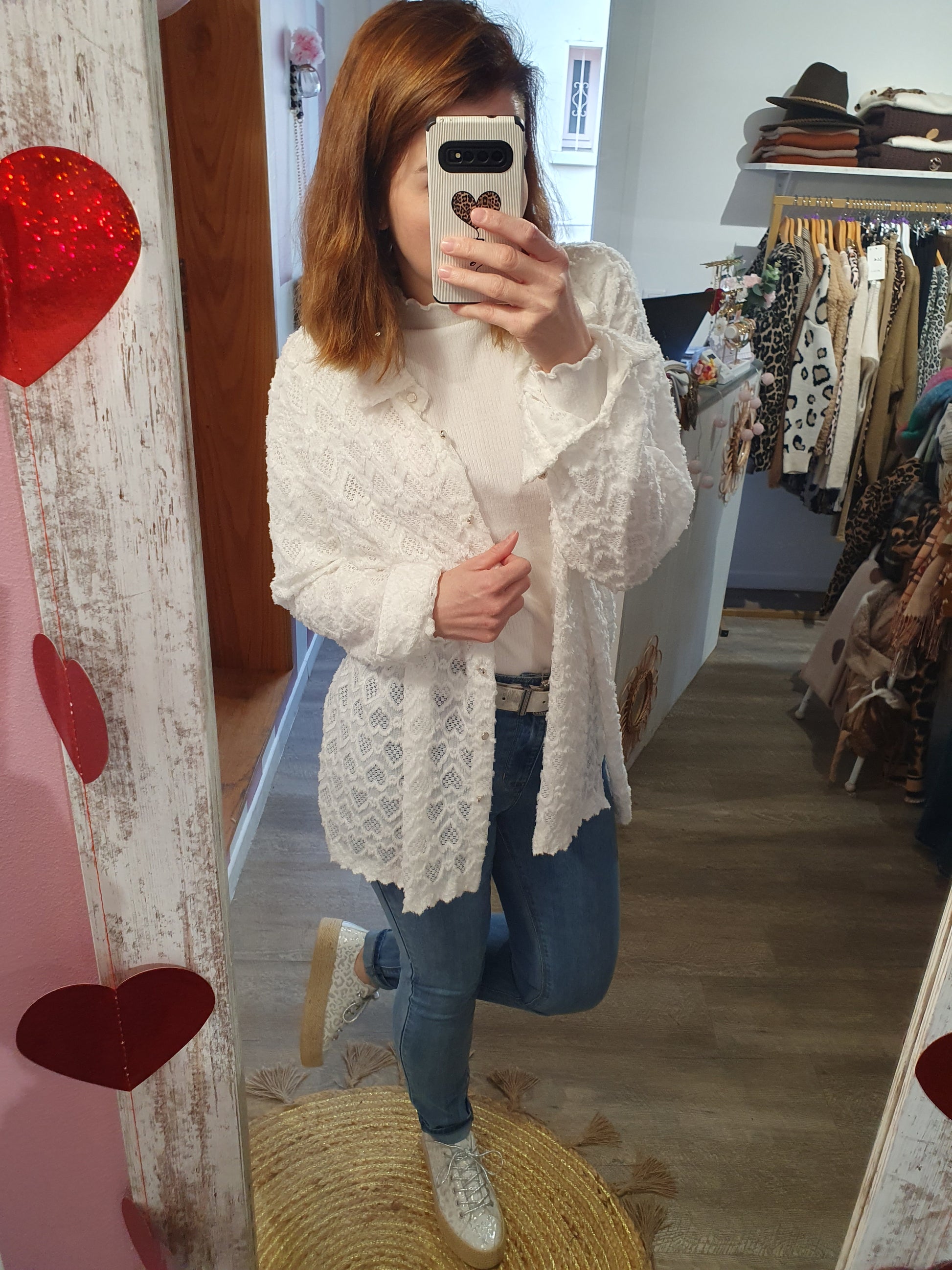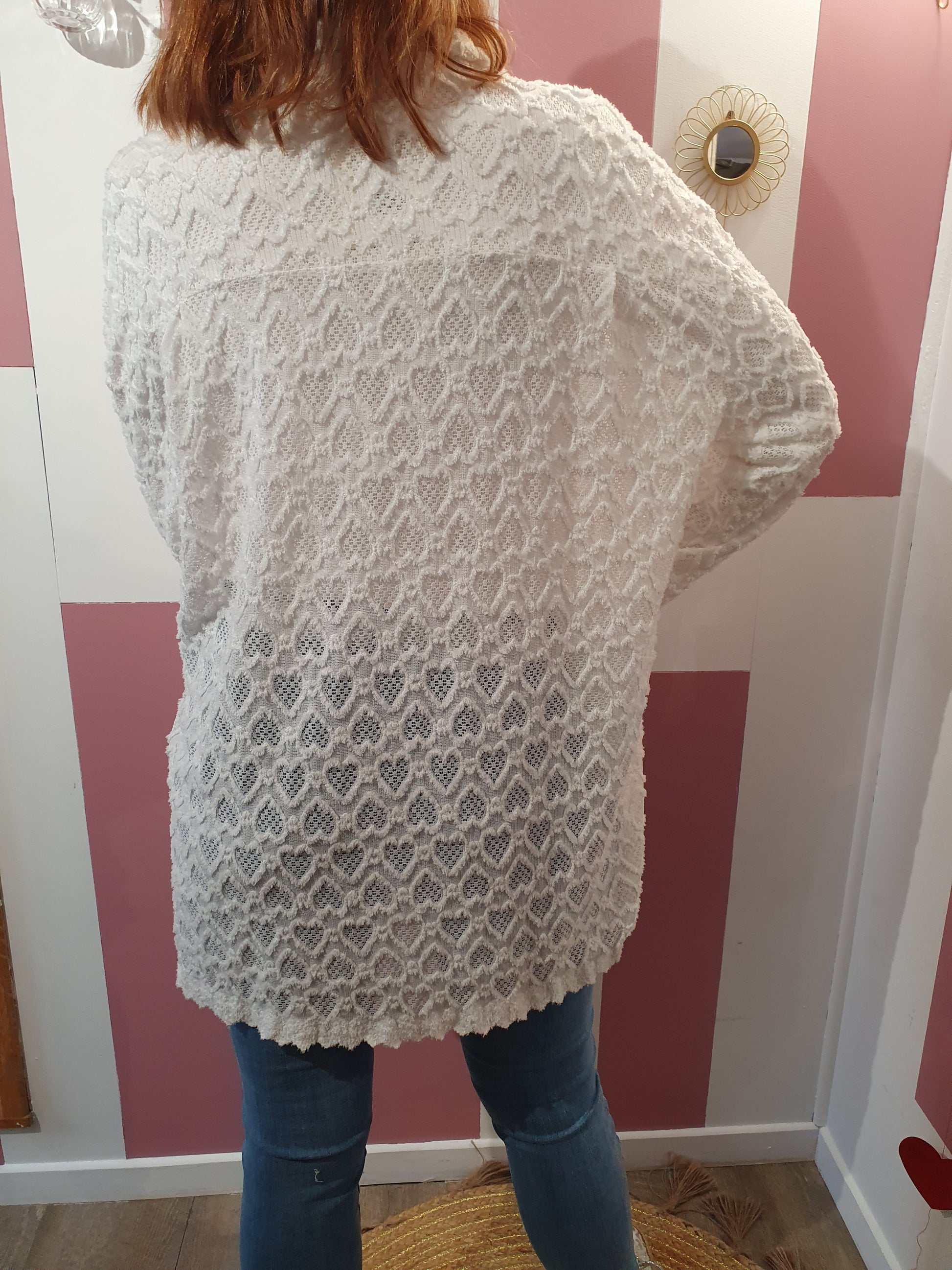 . Chemise longue, blanche à dentelle, à motif cœur en relief