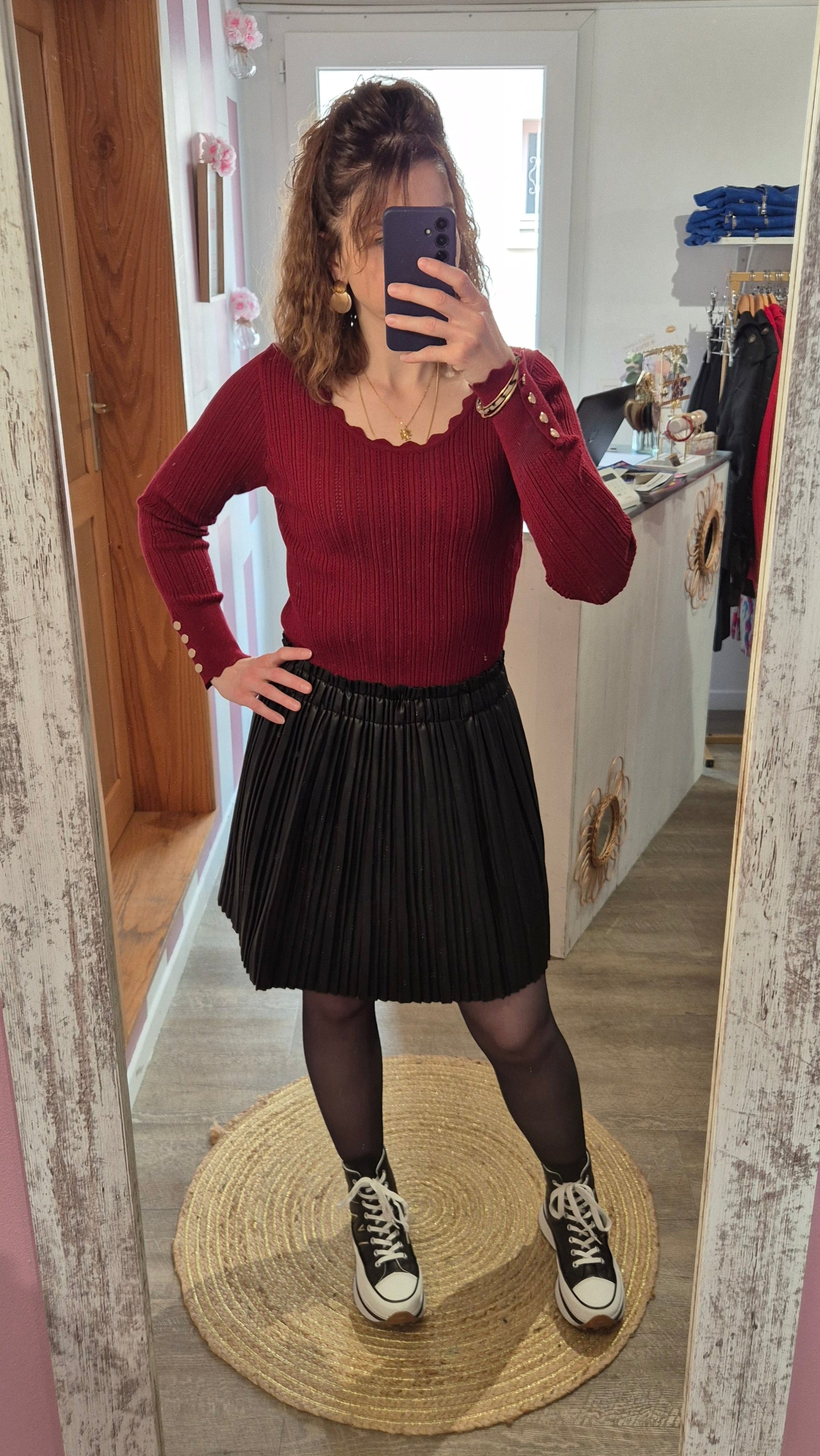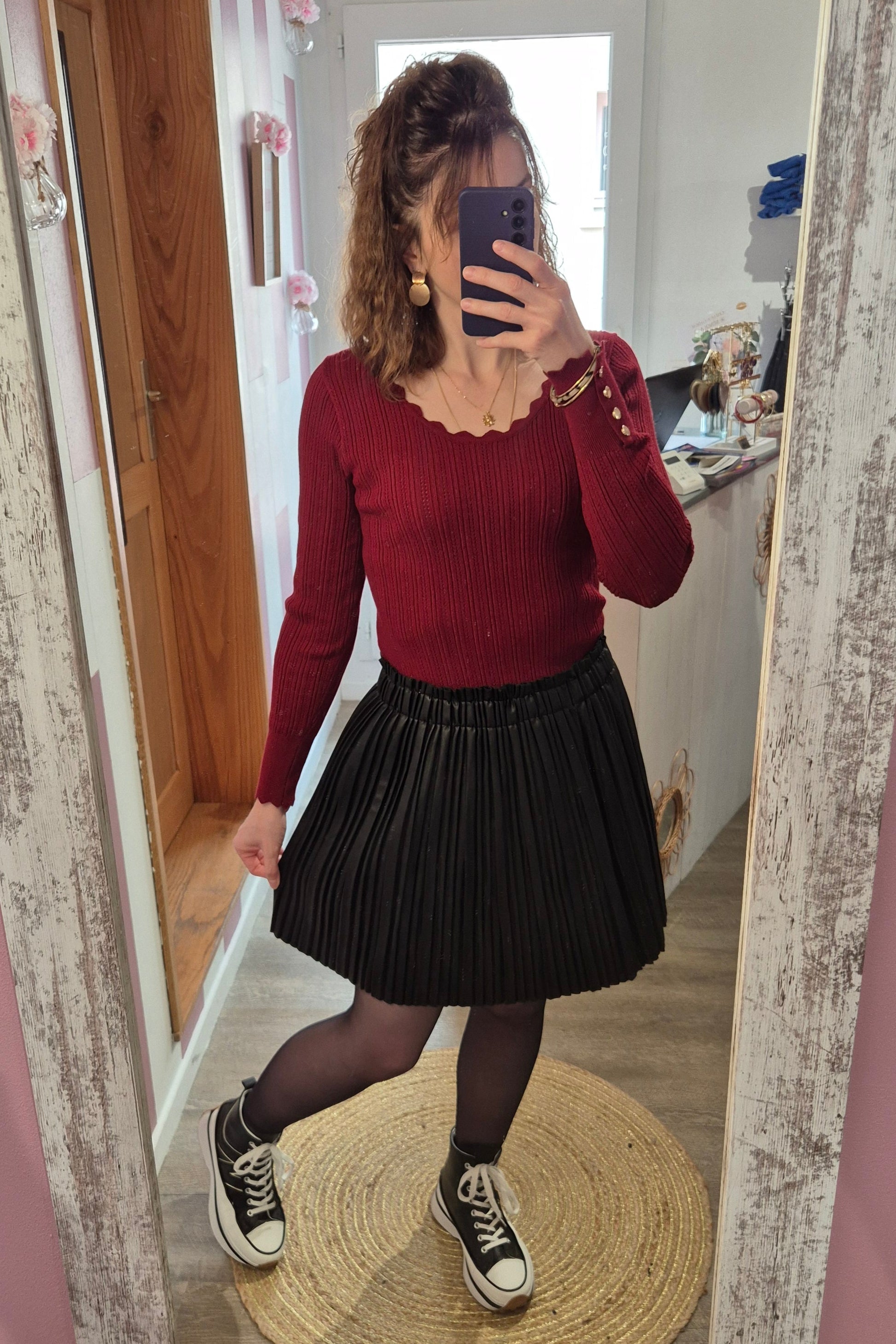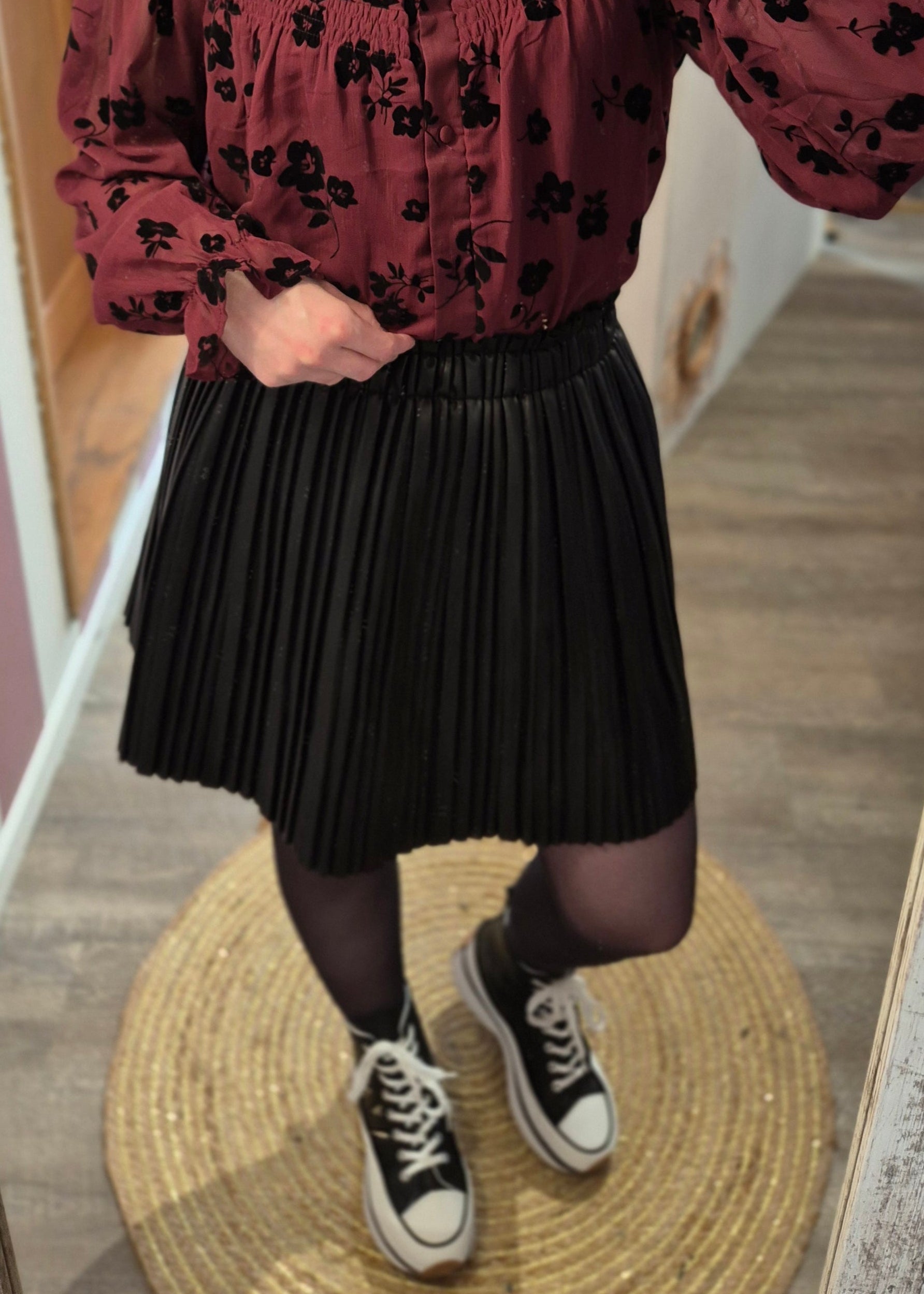 . Jupe plissée avec élastique à la taille, en simili cuir noir