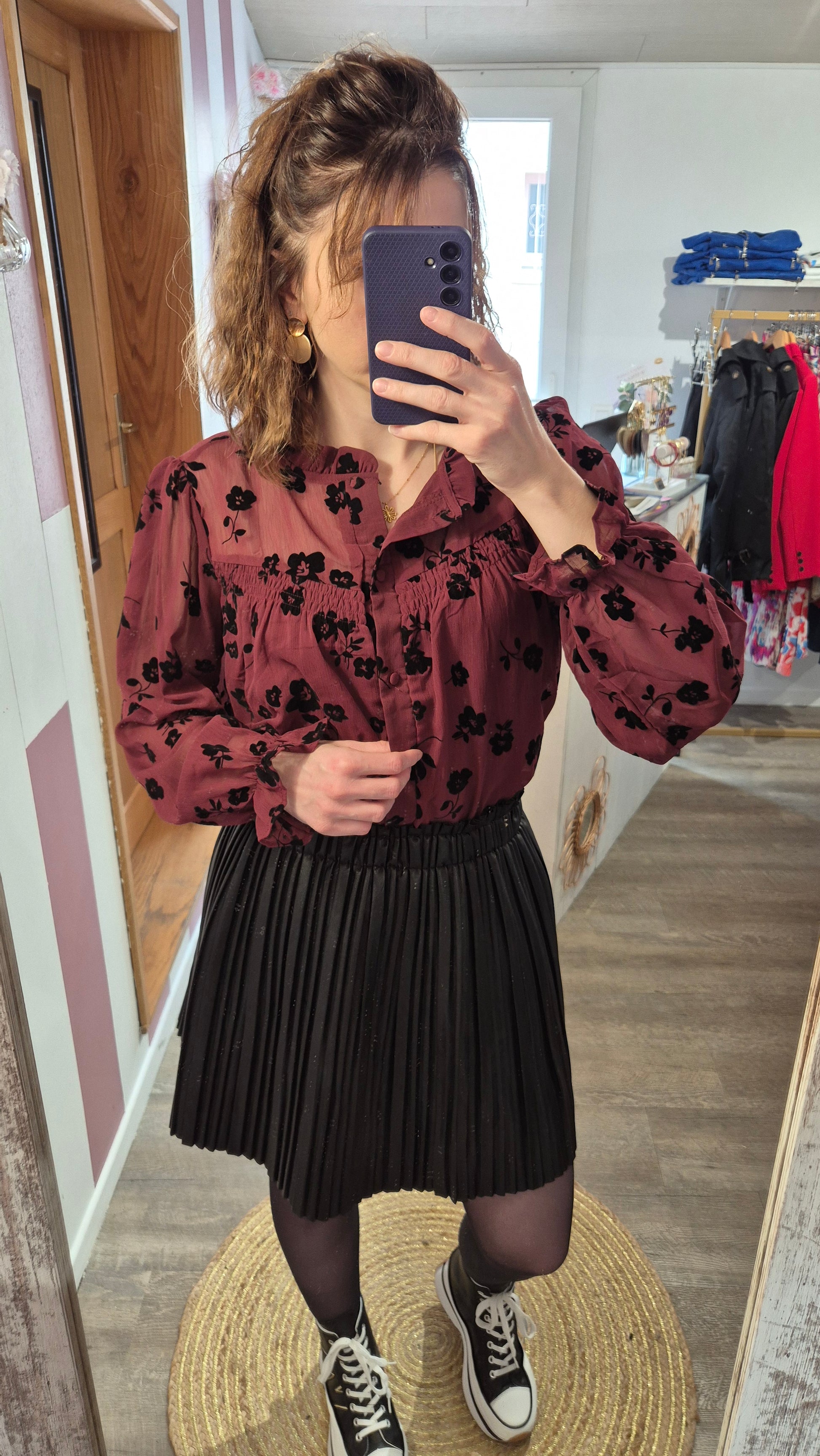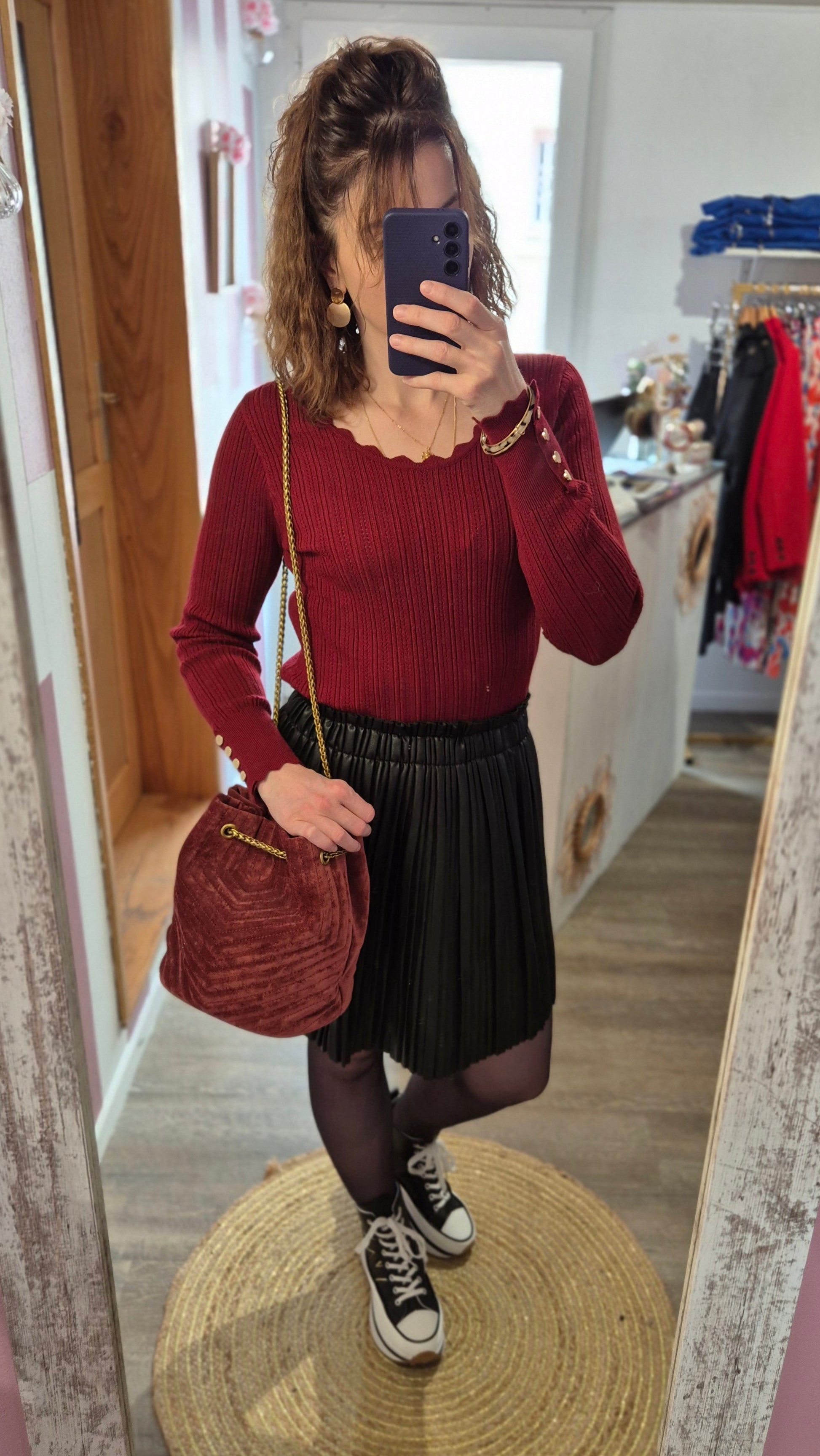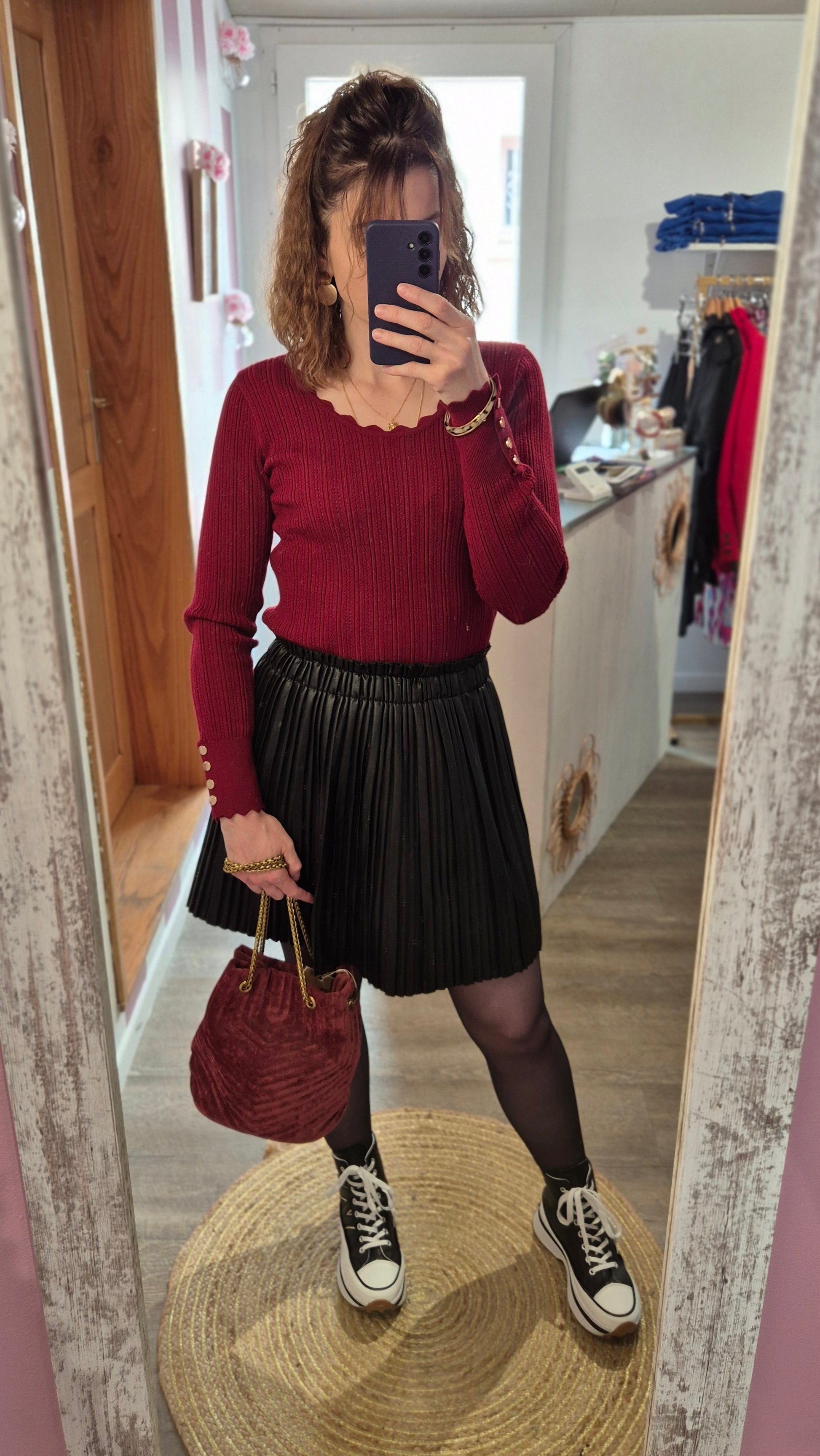 . Jupe plissée avec élastique à la taille, en simili cuir noir