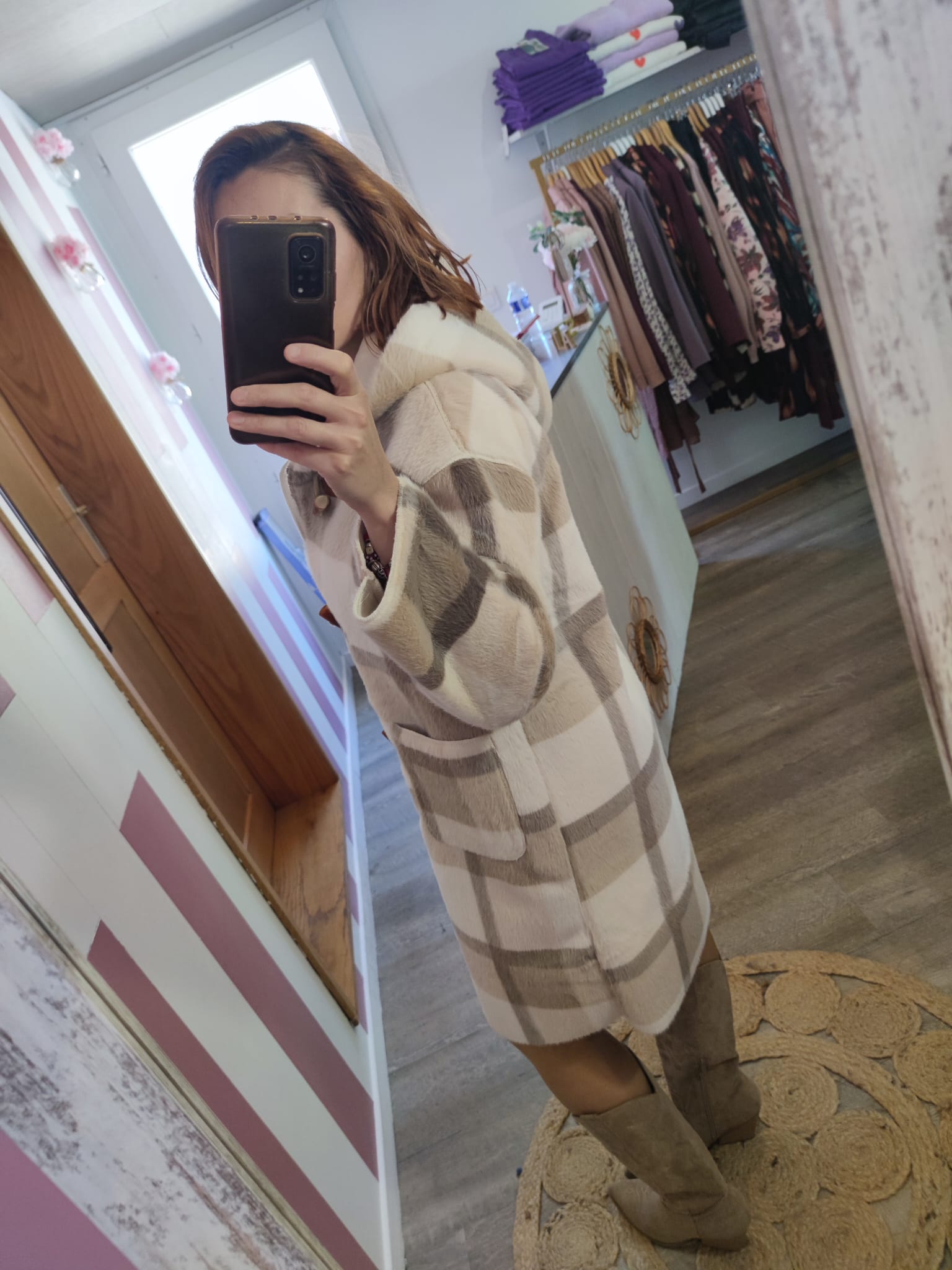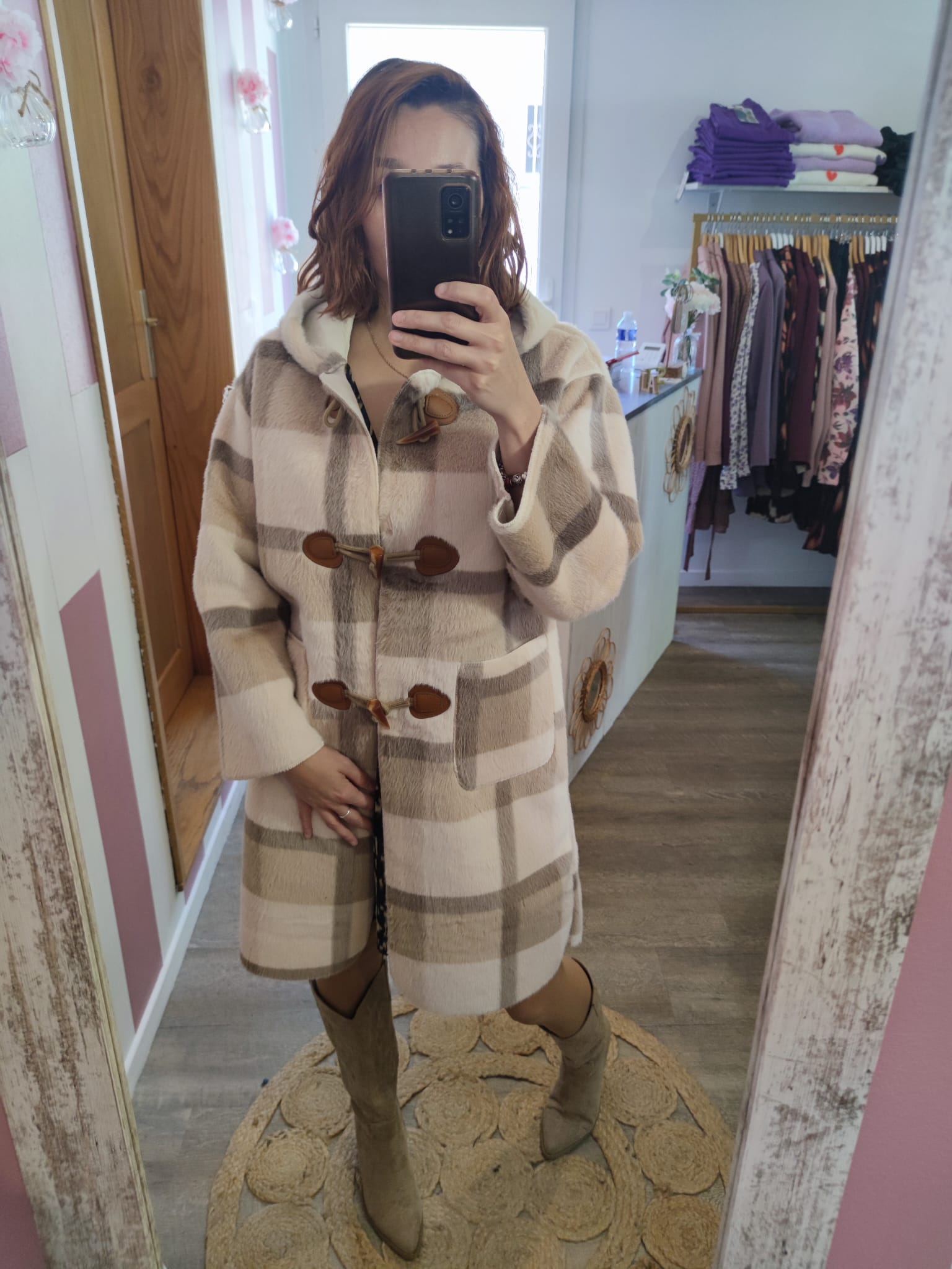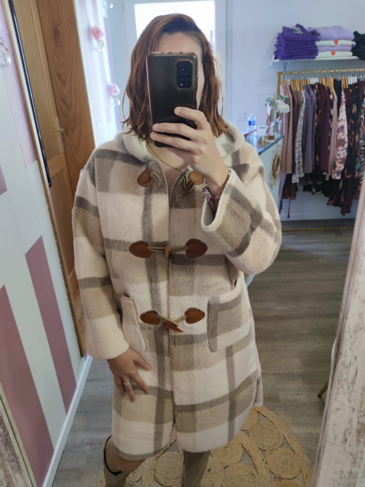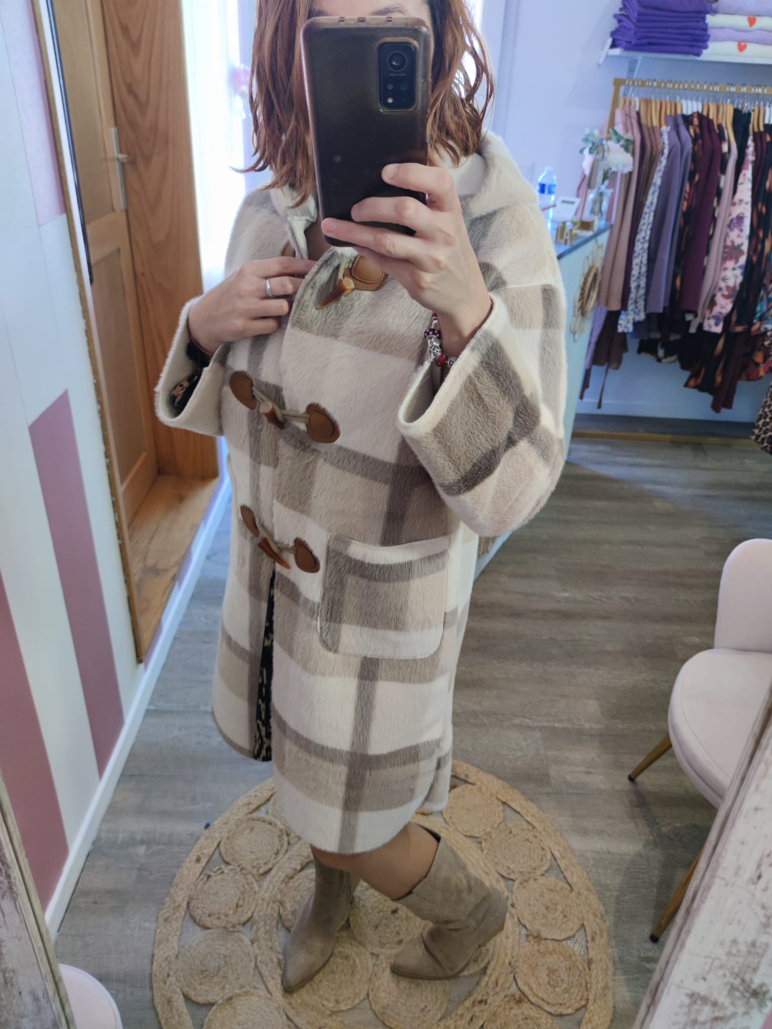 . Manteau mi-long Duffle-coat, à carreaux, poche plaquée, à capuche fixe, fermeture boutonnée