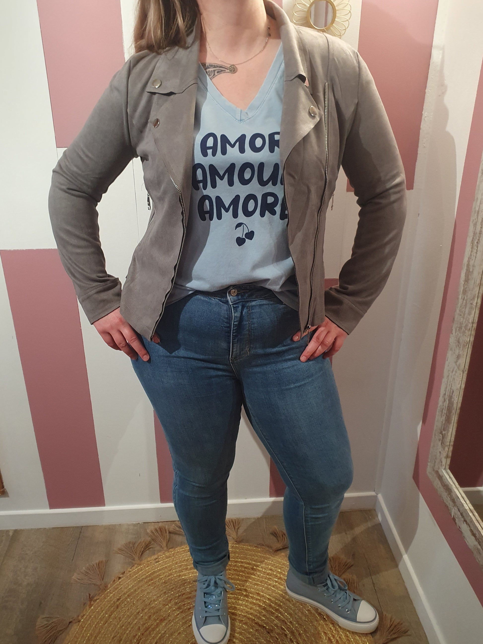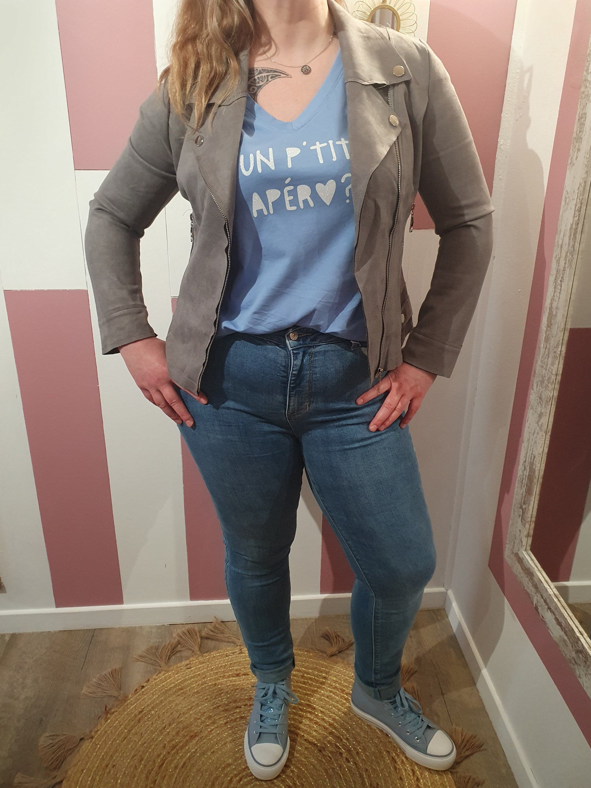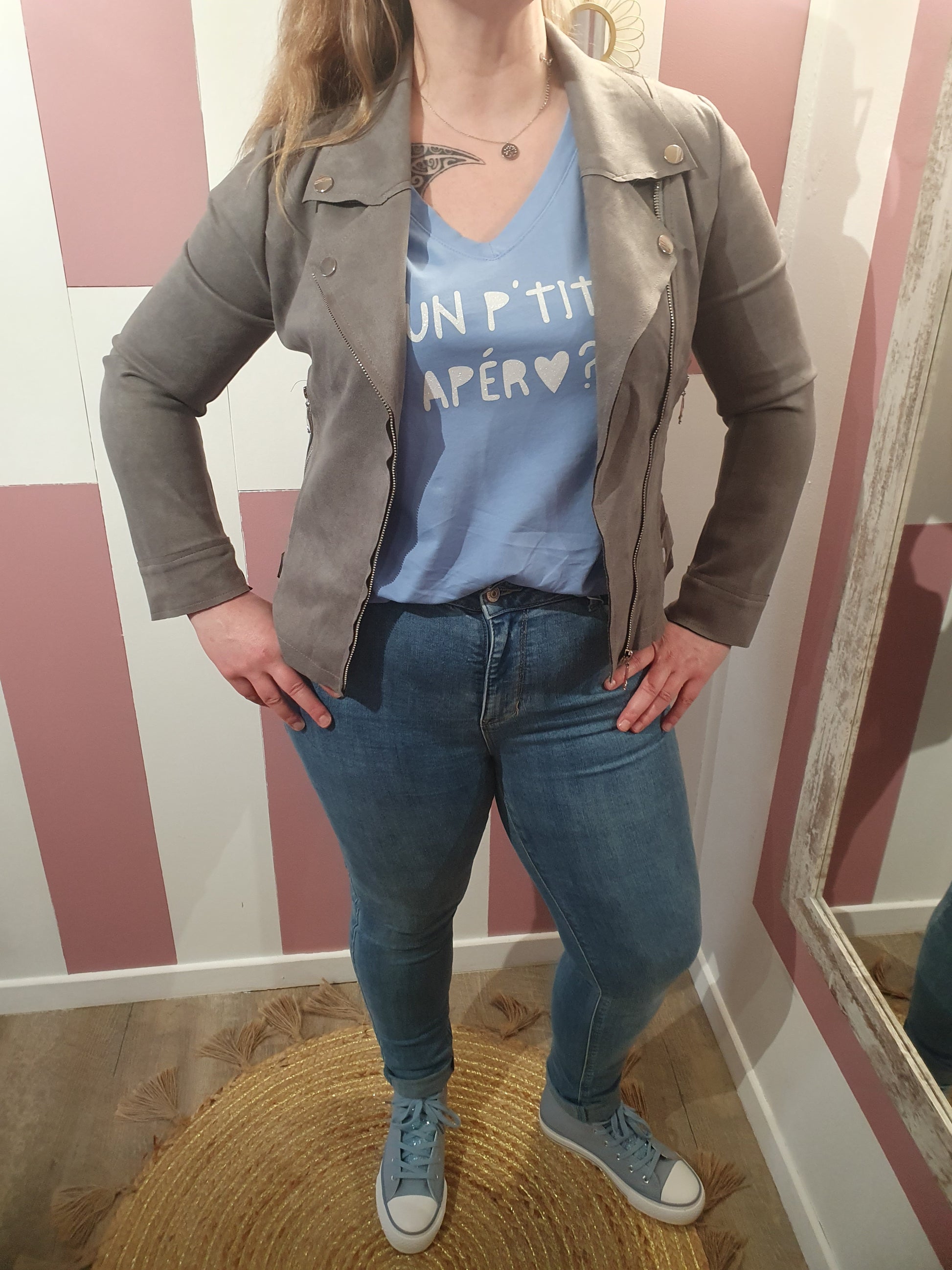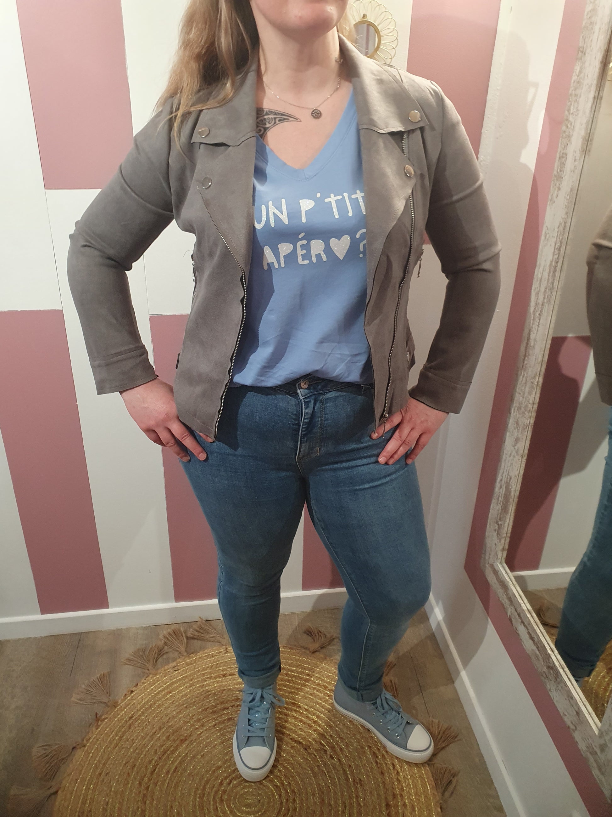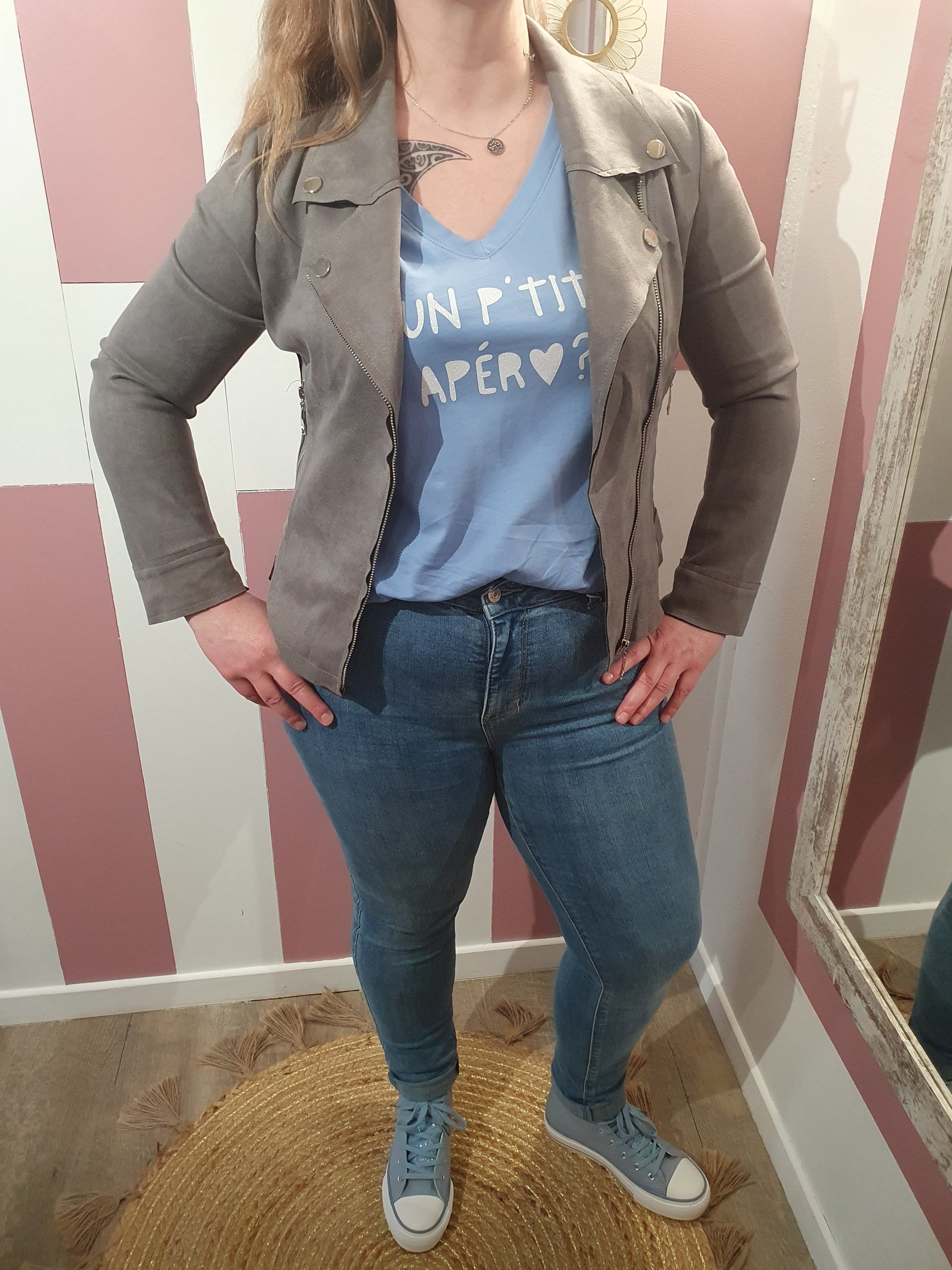 . Perfecto effet suédine fermé devant par un zip, deux poches côtés avec zip
