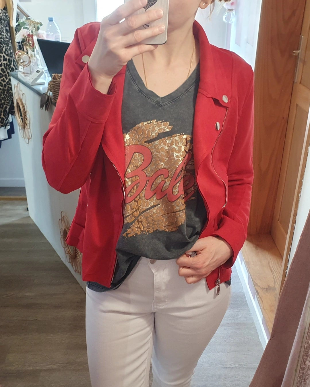 . Perfecto effet suédine fermé devant par un zip, deux poches côtés avec zip