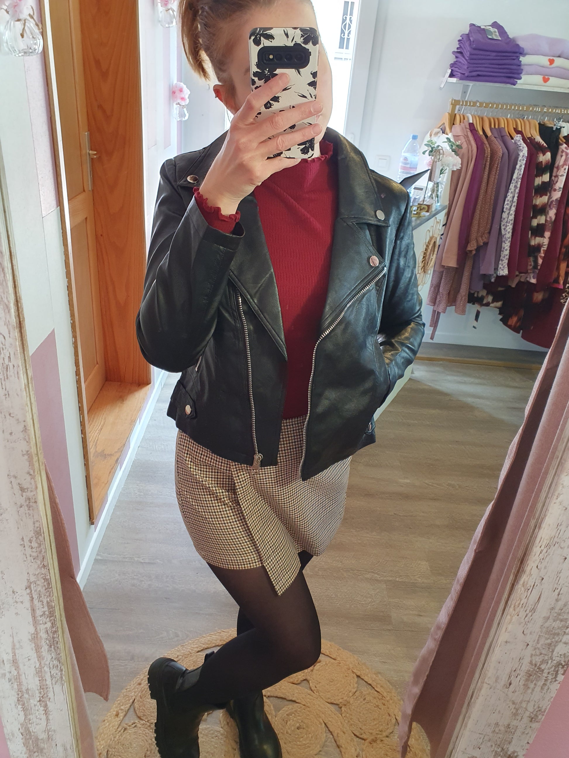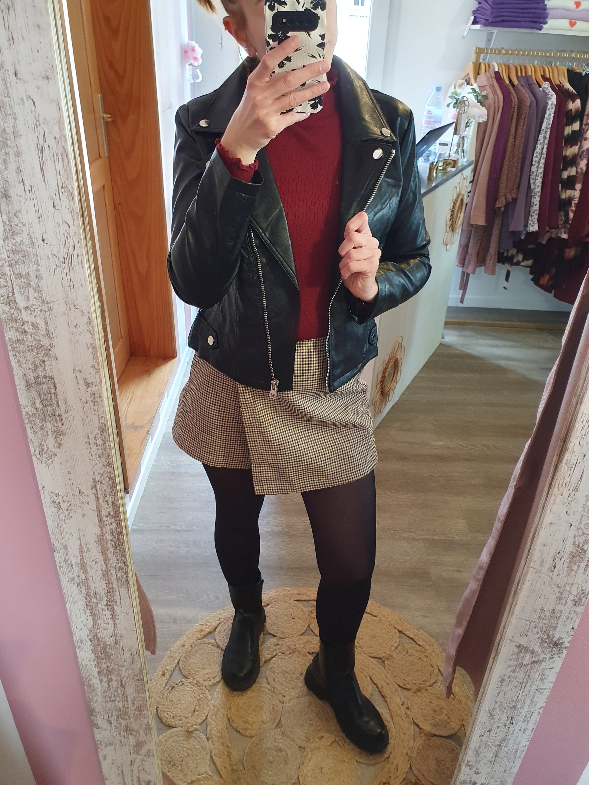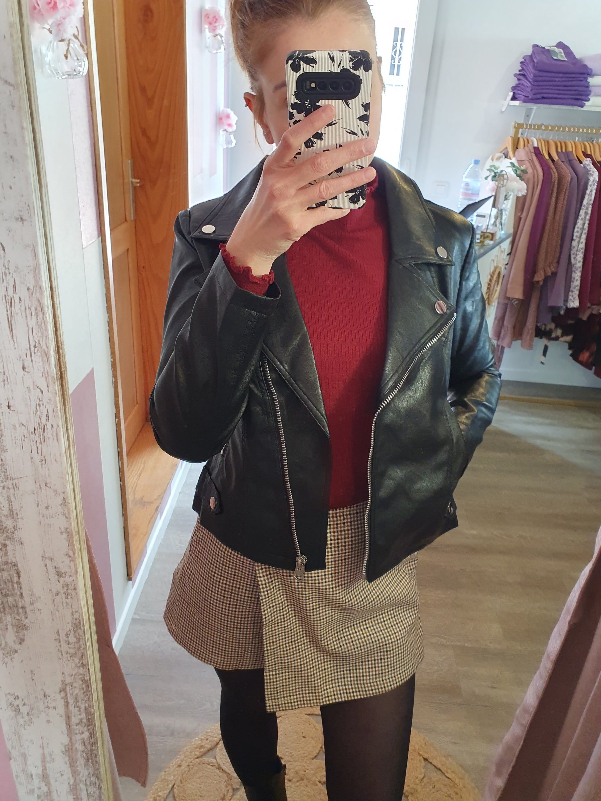 . Perfecto en simili cuir, fermé devant par un zip. Deux poches côtés avec zip