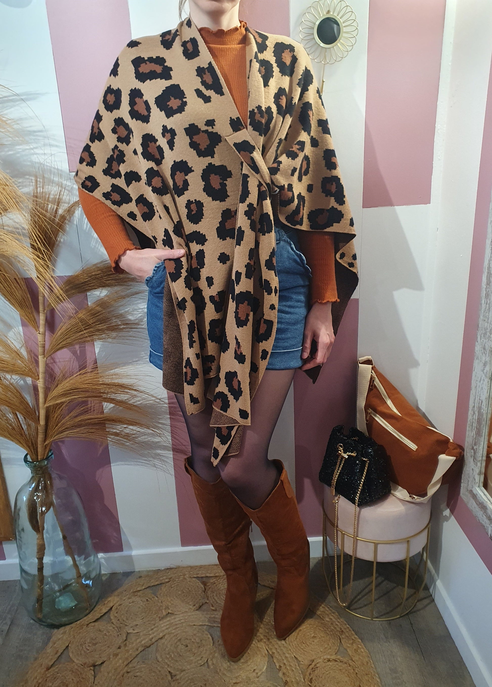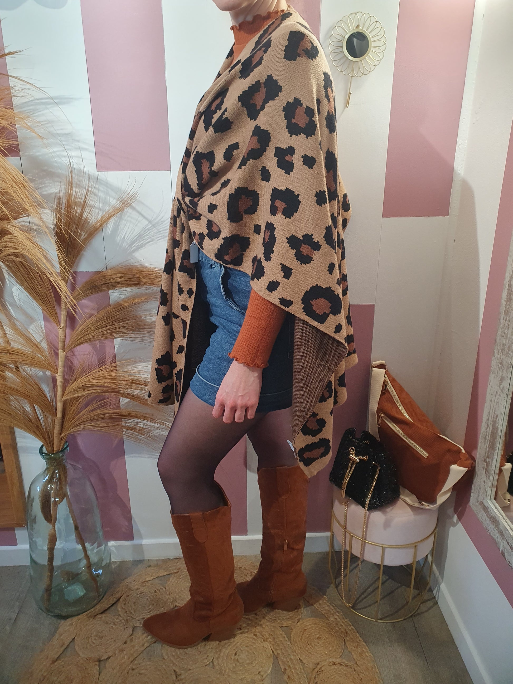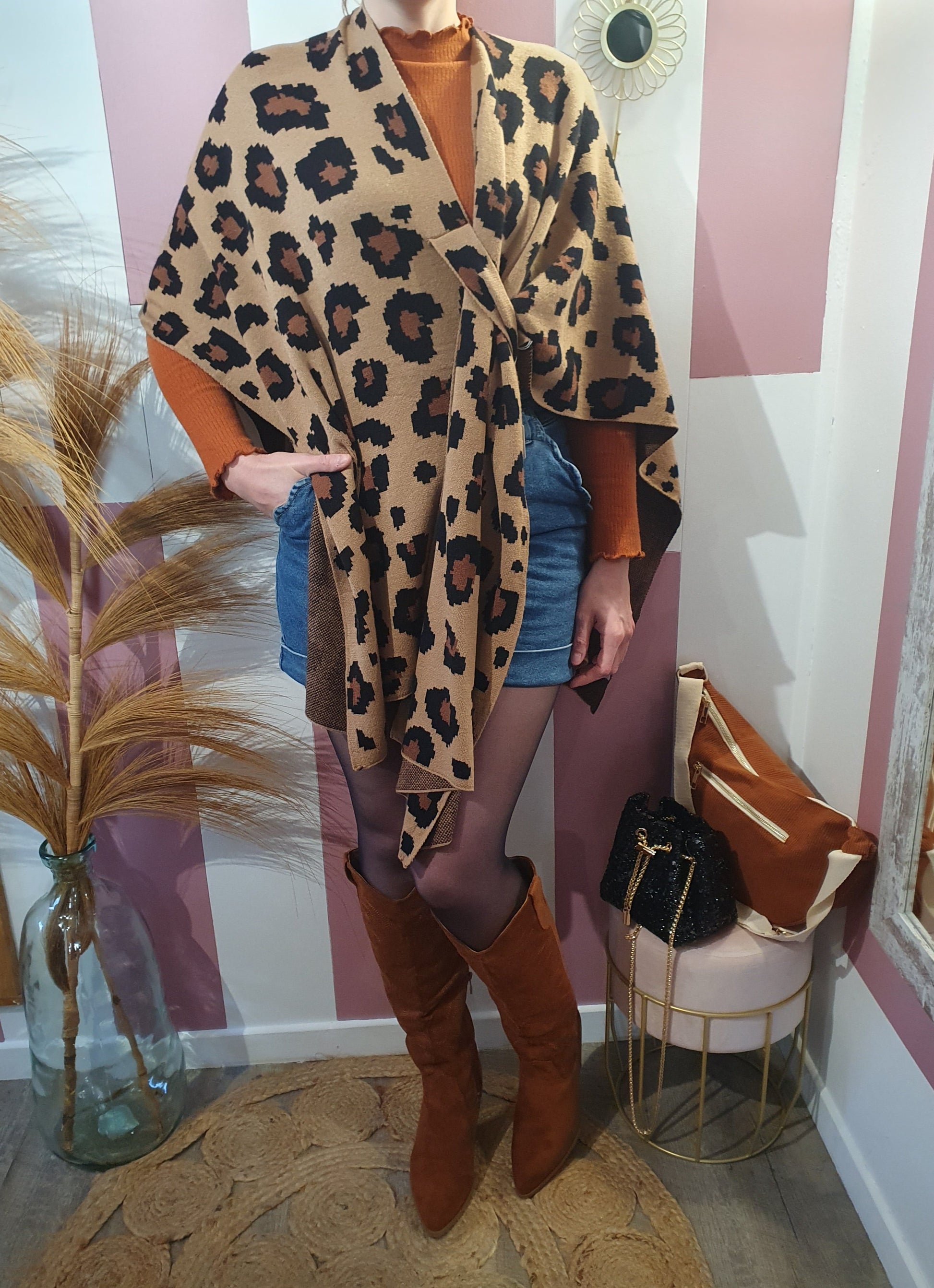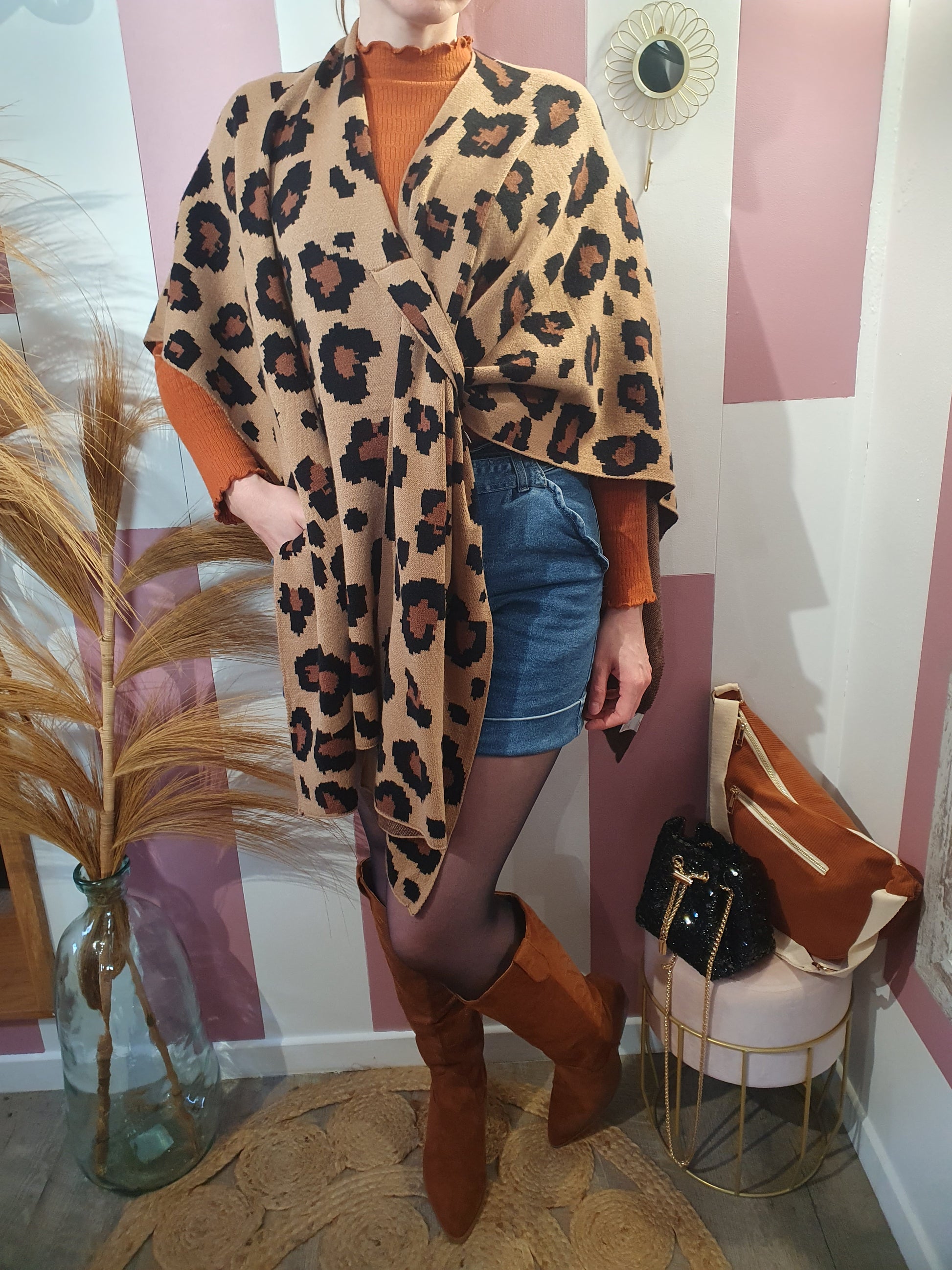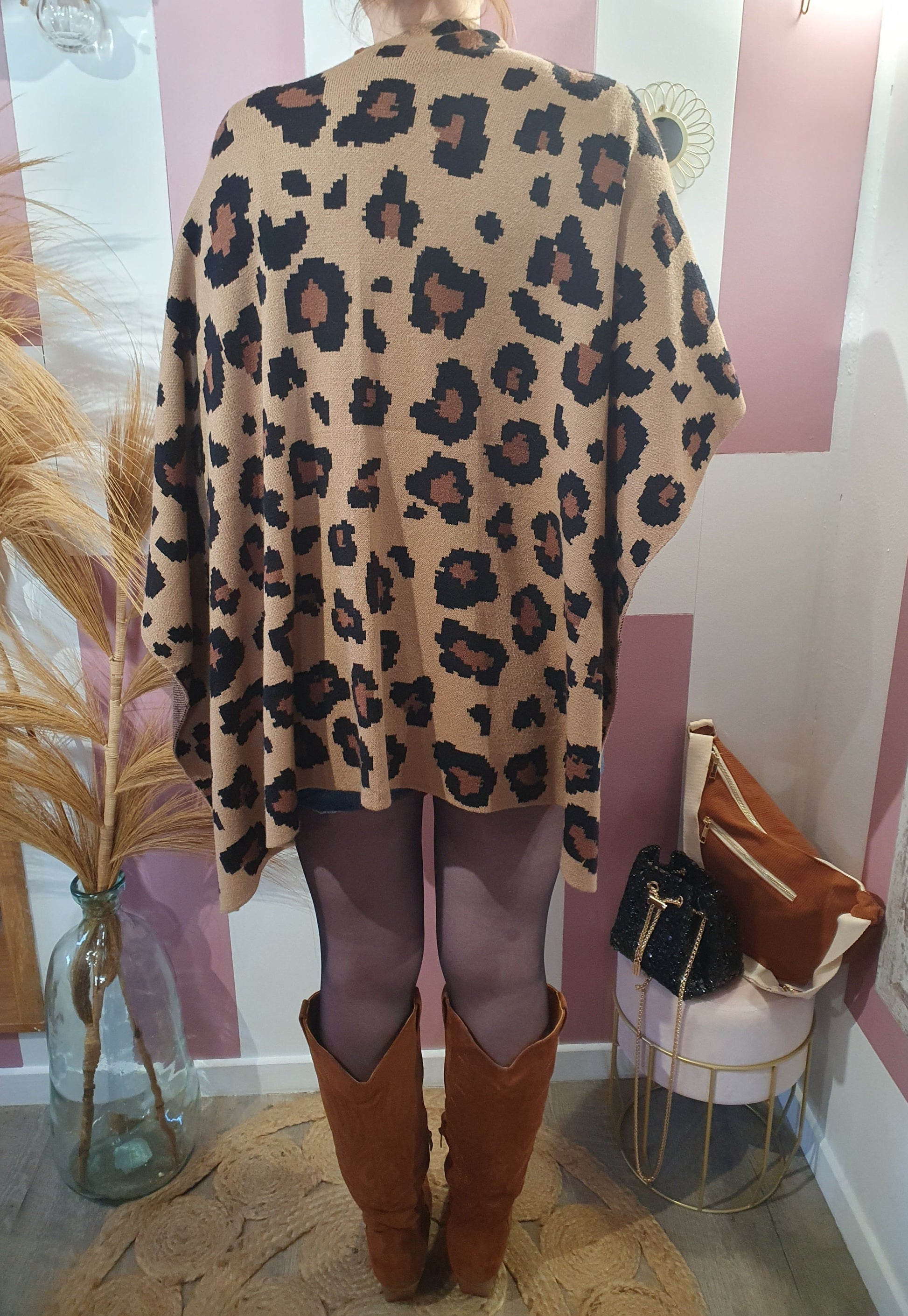 . Poncho imprimé léopard, manche courte effet chauve souris