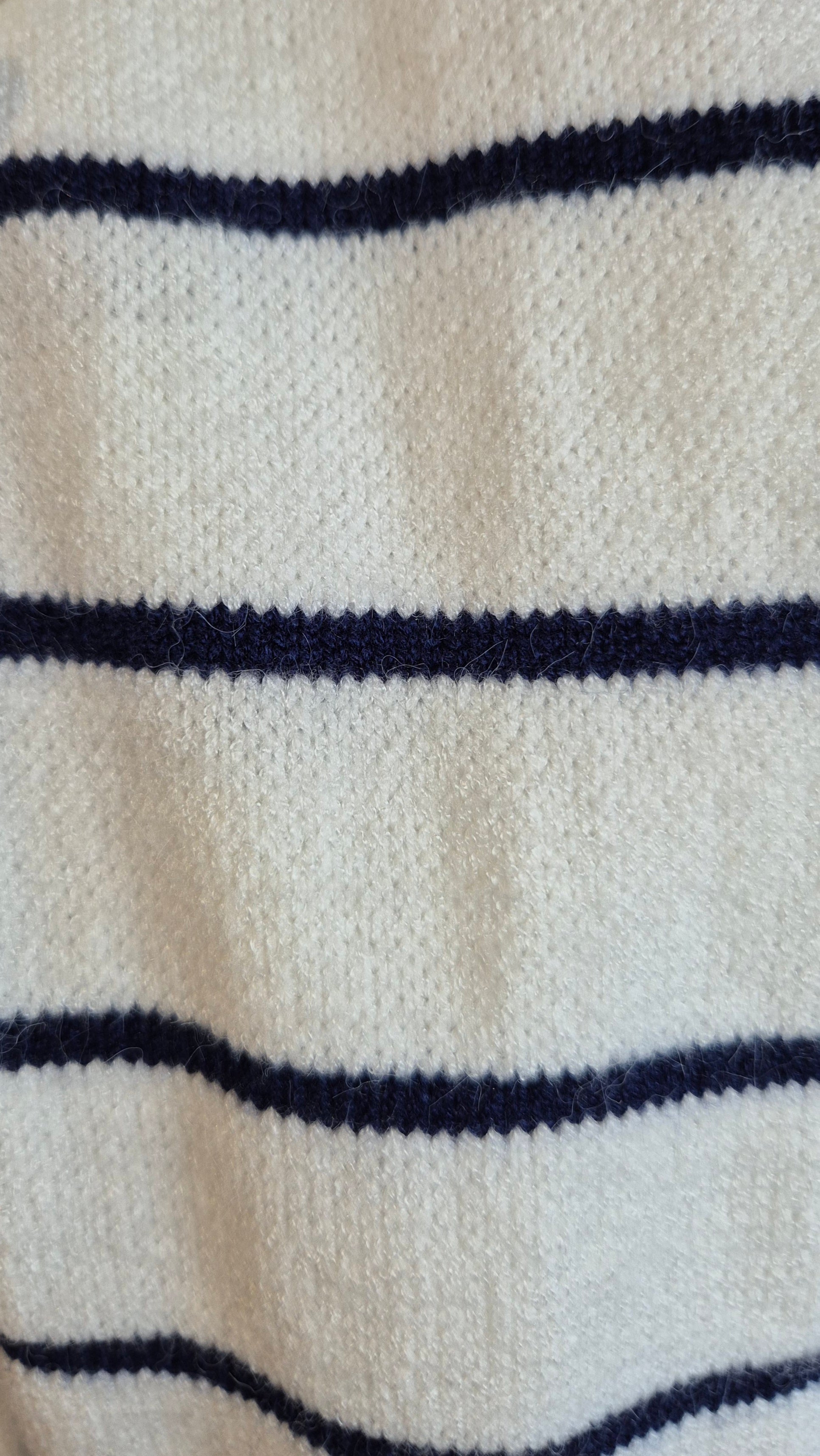 . Liseré brillant en fil lurex doré au-dessus des rayures.